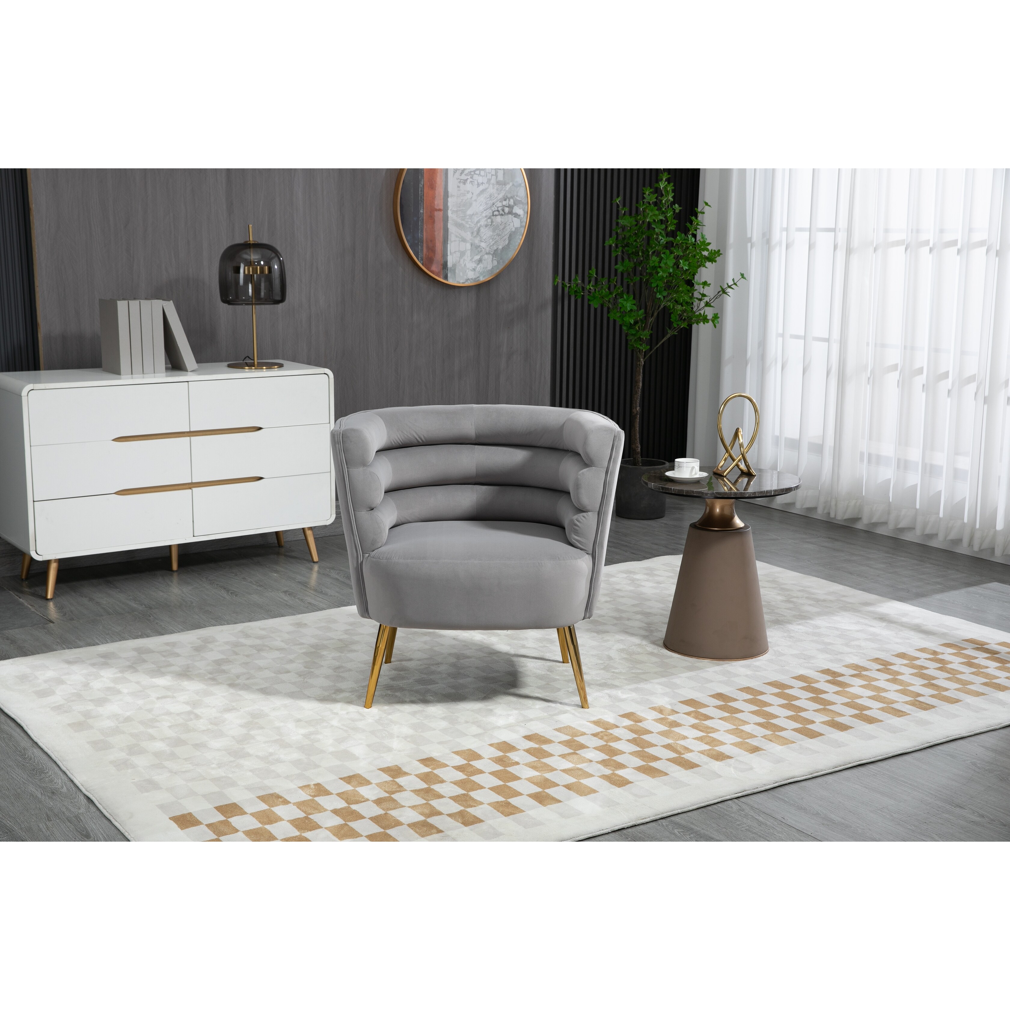 Velvet Leisure Chair, Living Room Arm Chair, Golden Metal Legs Lounge Chair