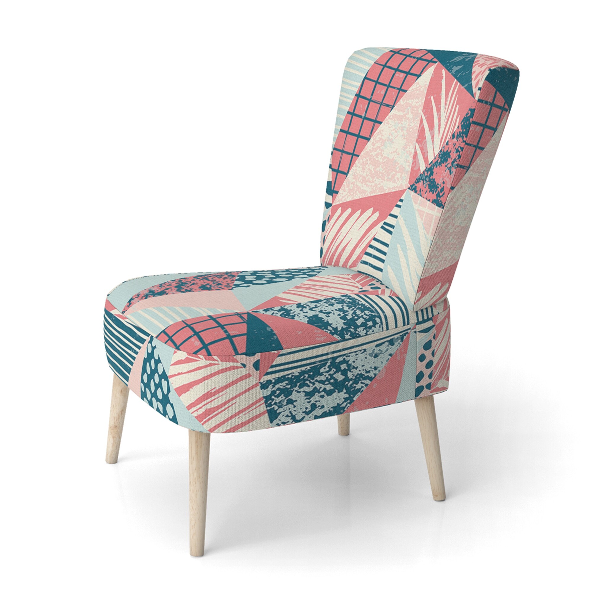 Designart "Peach and Blue Patchwork" Upholstered Patterned Accent Chair and Arm Chair