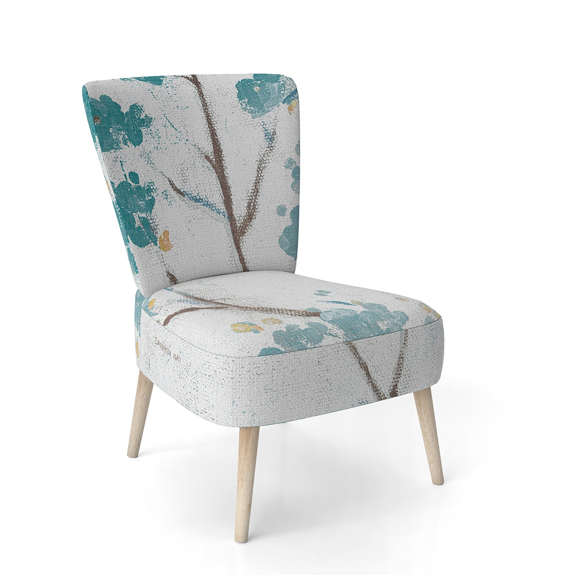 Designart "Teal Cherry Blossoms II" Upholstered Traditional Accent Chair - Arm Chair