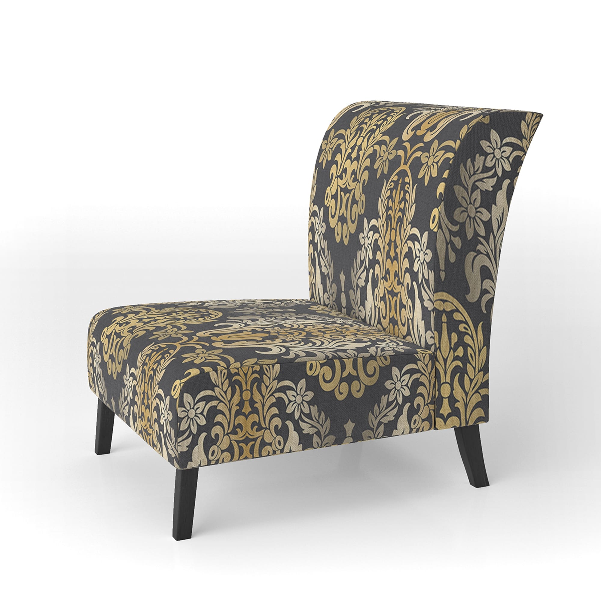Designart "Gold Damask" Upholstered Patterned Accent Chair and Arm Chair