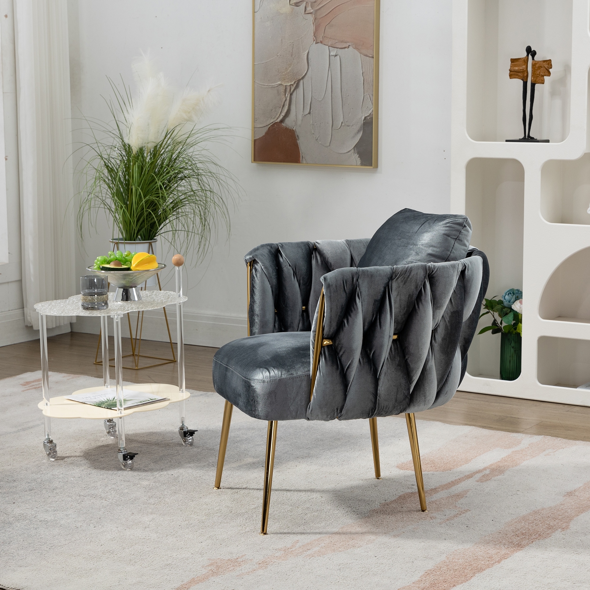 Accent Chair Velvet Leisure Single Chair, Comfort Soft Backrest Wrapped Arm Chairs with Golden Feet