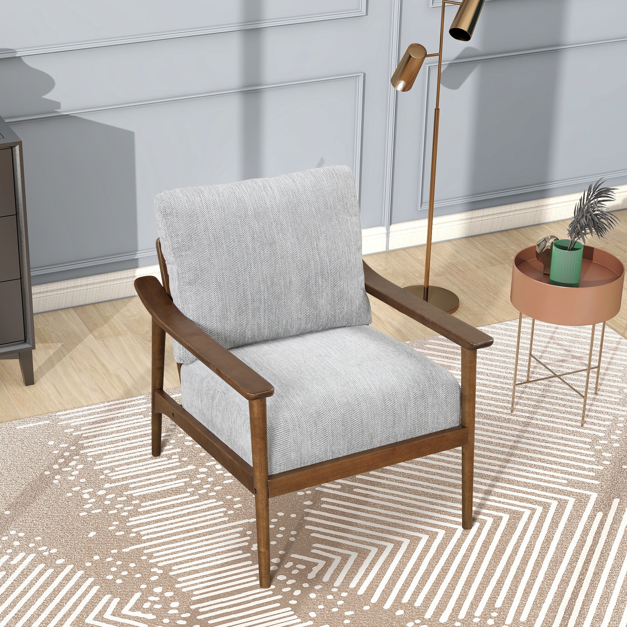 Upholstered Accent Chair Arm Chair with Slatted Back and Thick Pad