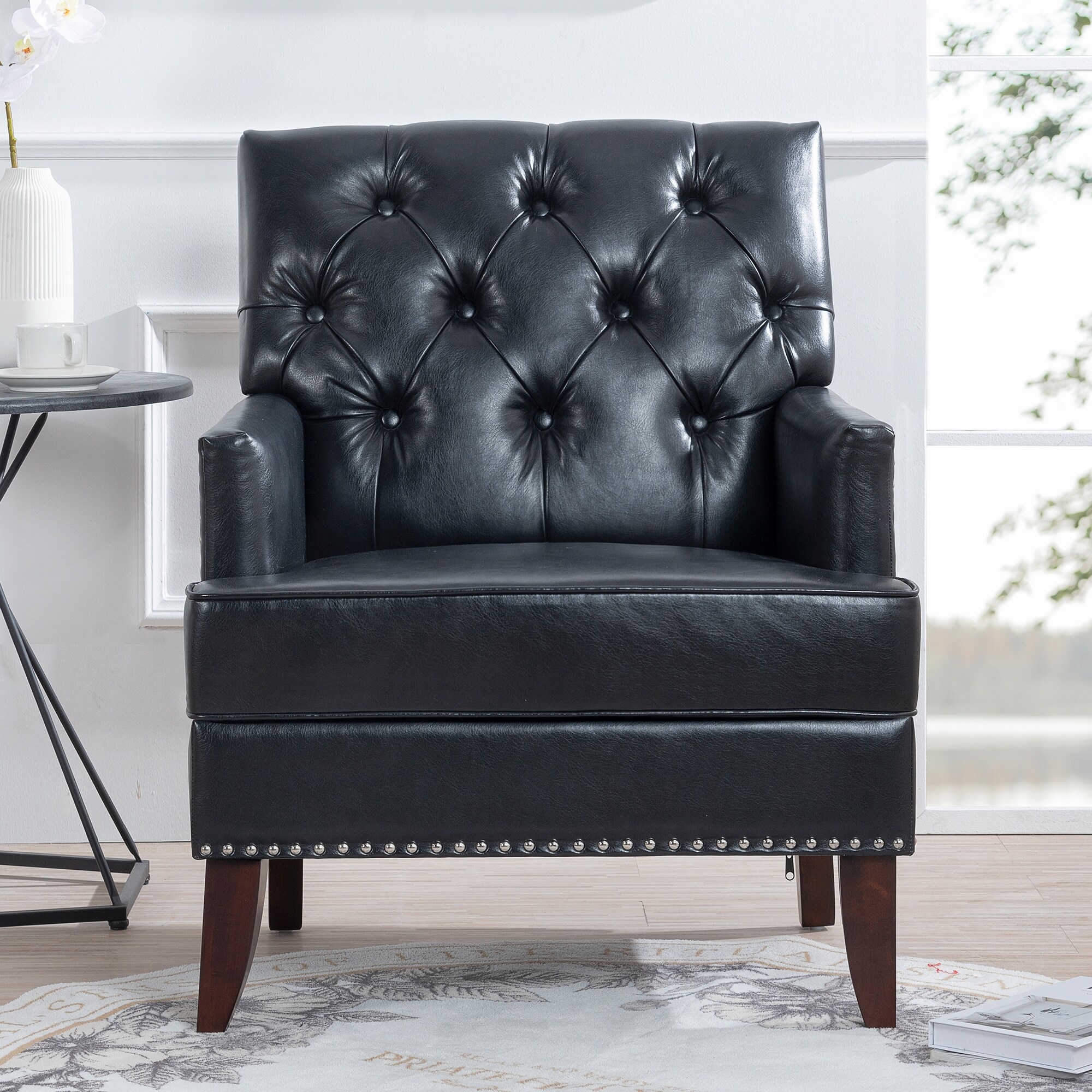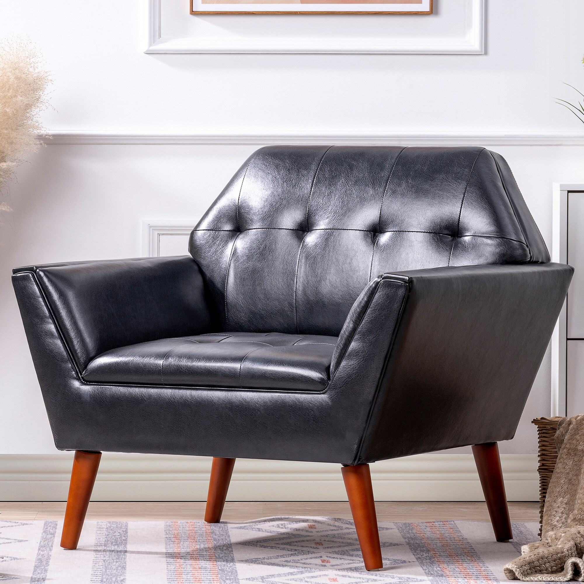 Traditional Arm Chairs for Living Room PU Leather Accent Chair with Solid Wood Frame, Black