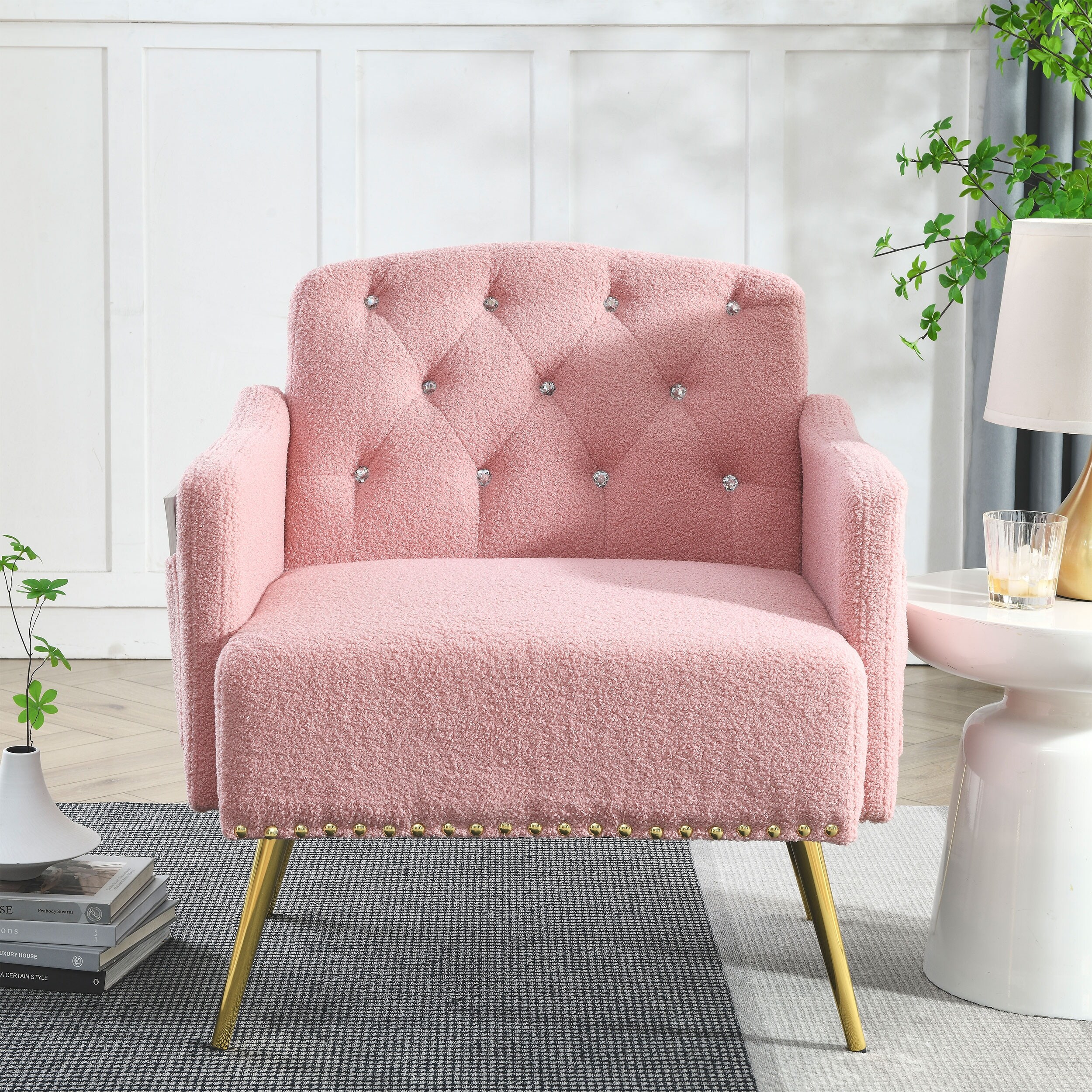 Accent Chairs Arm Chair Velvet Fabric Padded Seat with Metal Base and Button-tufted Backrest