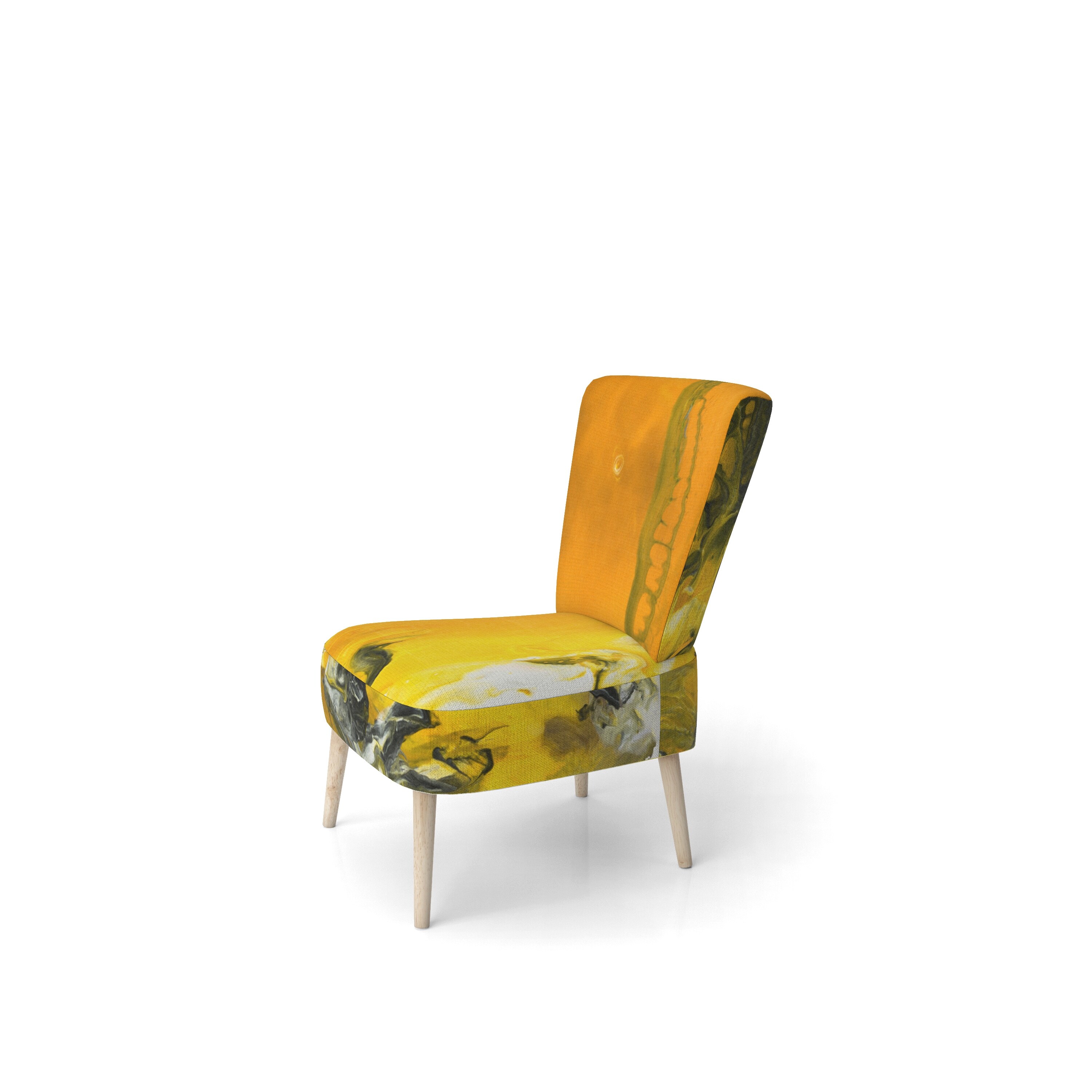 Designart "White And Yellow Marbled Acrylic With A Cloud of Black" Upholstered Modern Accent Chair - Arm Chair