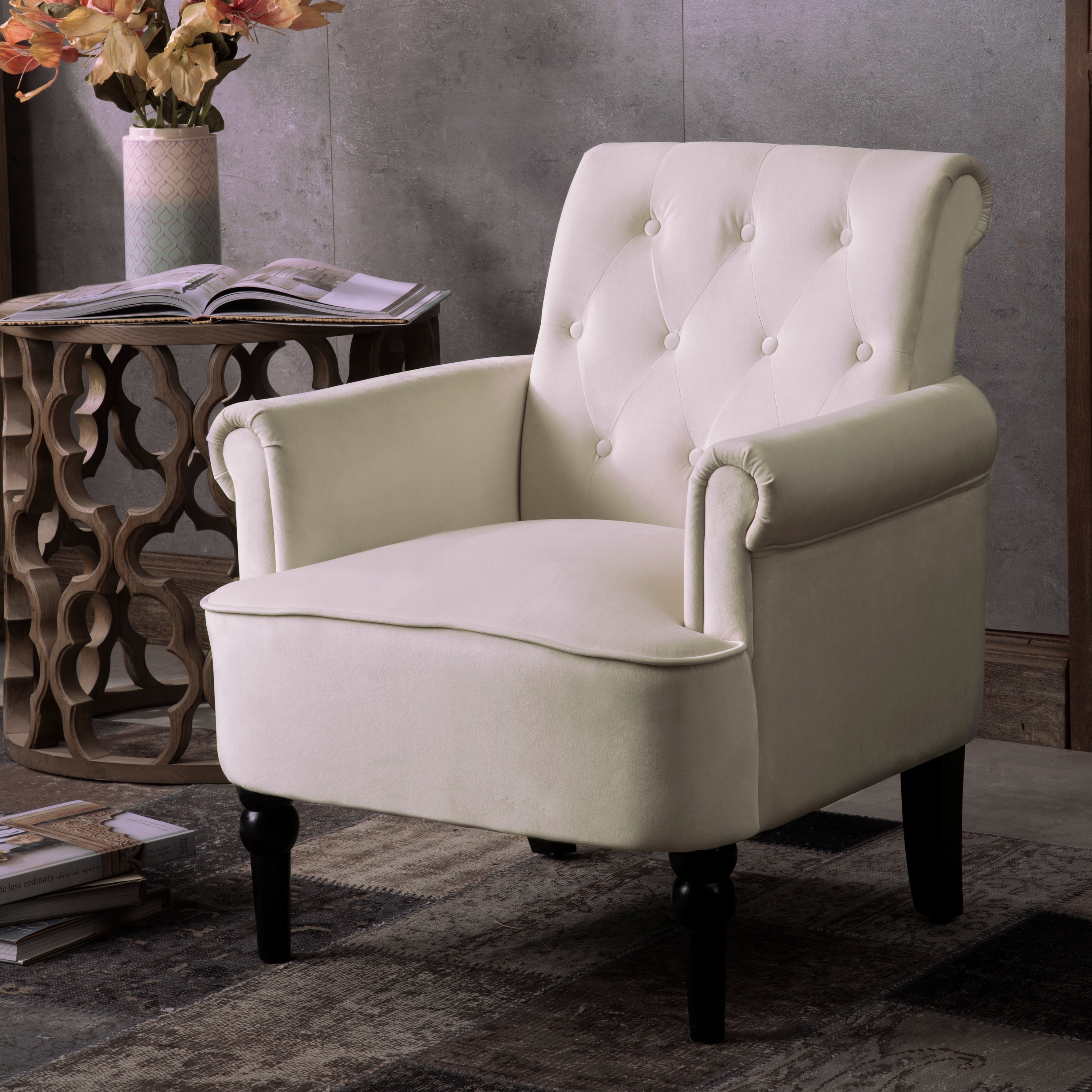 Elegant Button Tufted Accent Chair Classic Roll Arm Chair with Wooden Legs