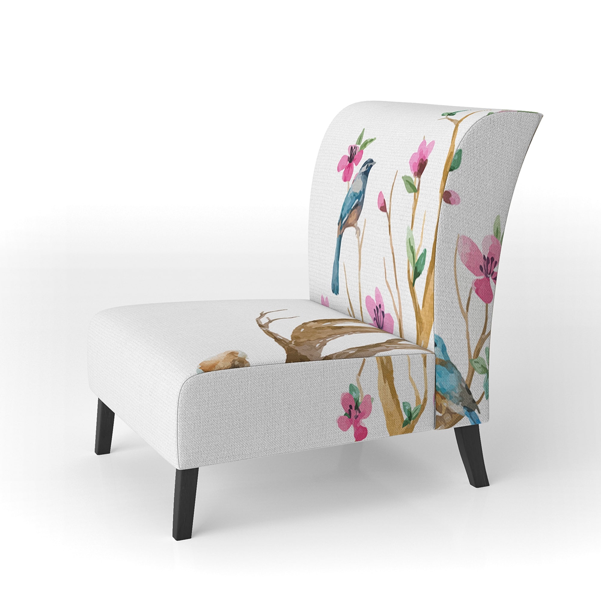 Designart "Pink and Blue Tropical Flowers" Upholstered Patterned Accent Chair and Arm Chair