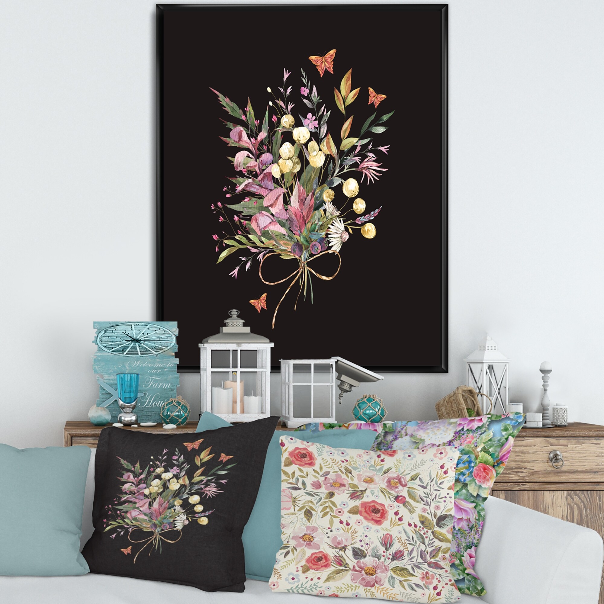 Designart "Vintage Floral Summer Wildflowers Arrangement" Traditional Framed Art Print