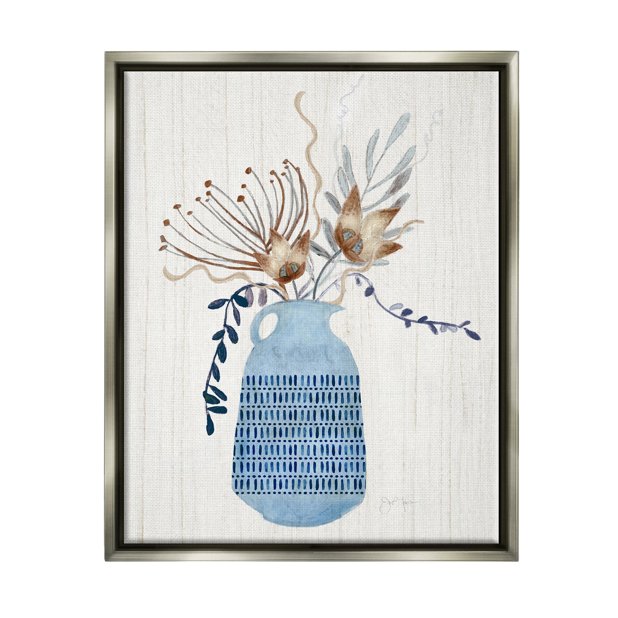 Stupell Industries Pleasant Blue Vase Boho Flowers Botanicals Arrangement Floater Frame, Design by Tava Studios
