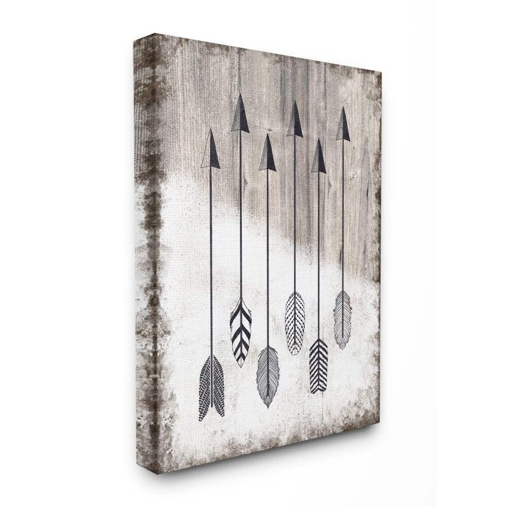 Stupell Industries Tribal Arrow Feather Pattern Black And White Design Canvas Wall Art