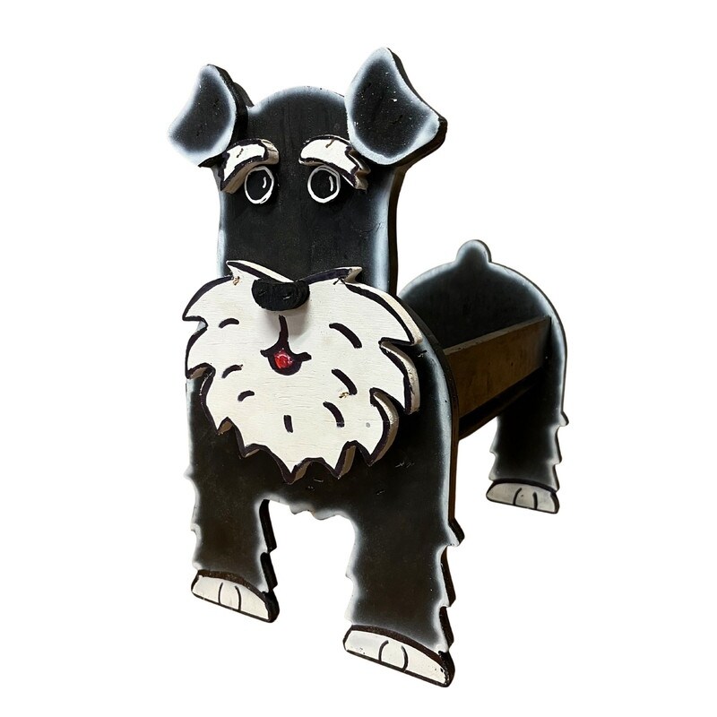 Rustic Arrow Schnauzer Design Wooden Planter - 8W x 18D x 21H
