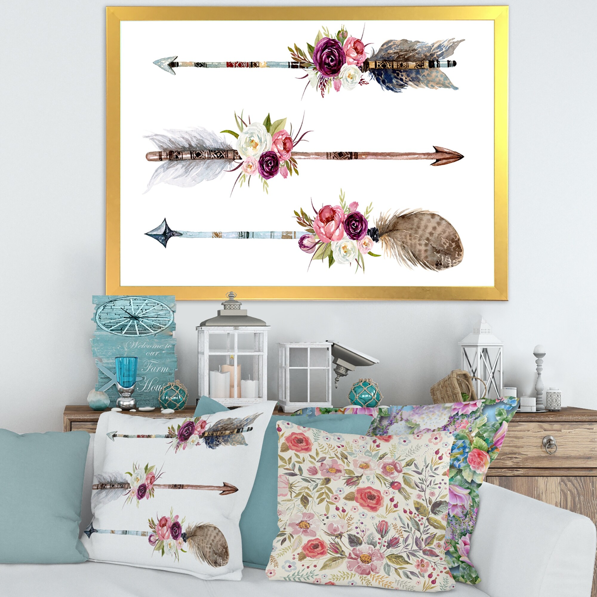 Designart "Ethnic Feathers and Flowers on Native Arrows III" Bohemian & Eclectic Framed Art Print