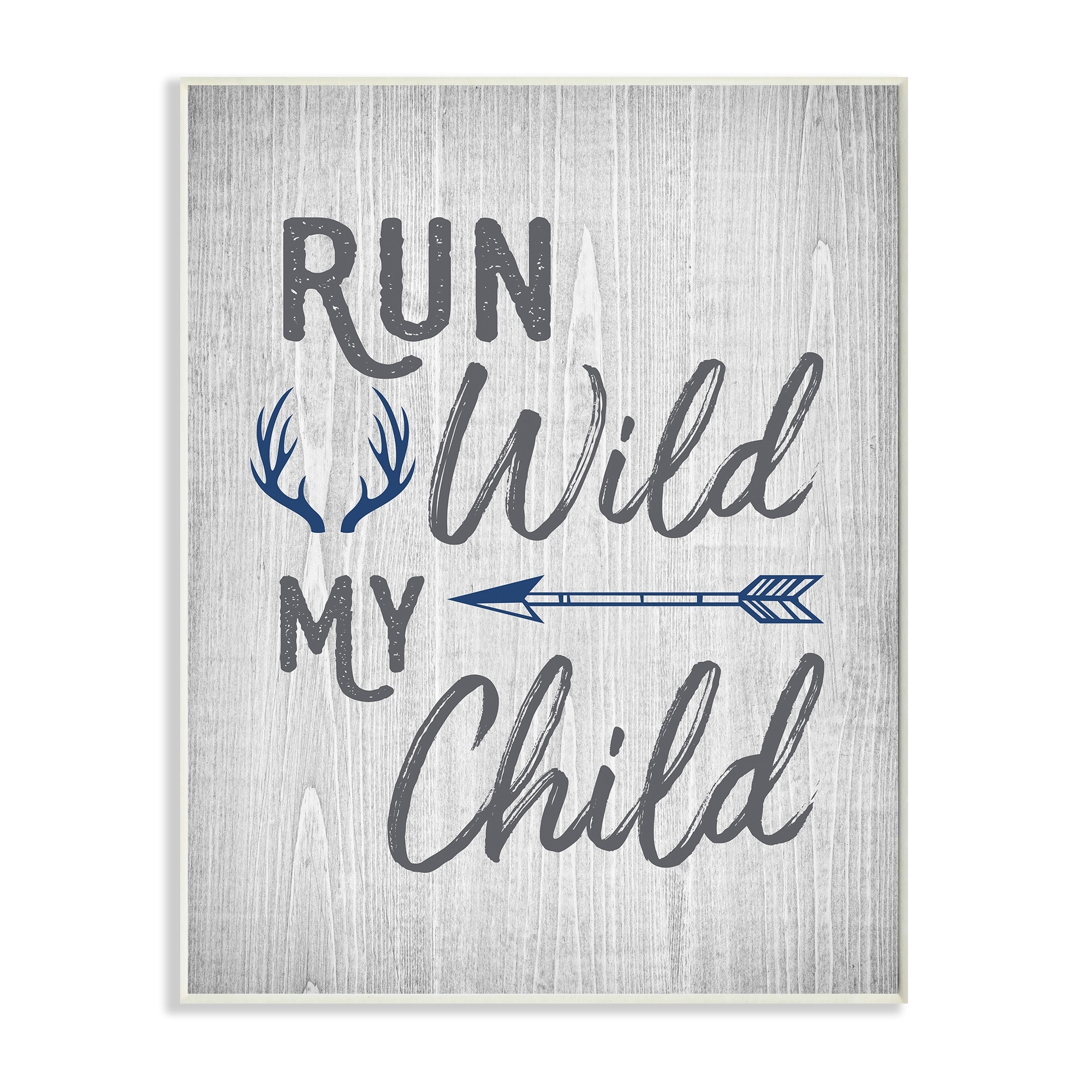 Stupell Industries Rustic Run Wild My Child Quote Arrows and Antlers Wood Wall Art - Grey