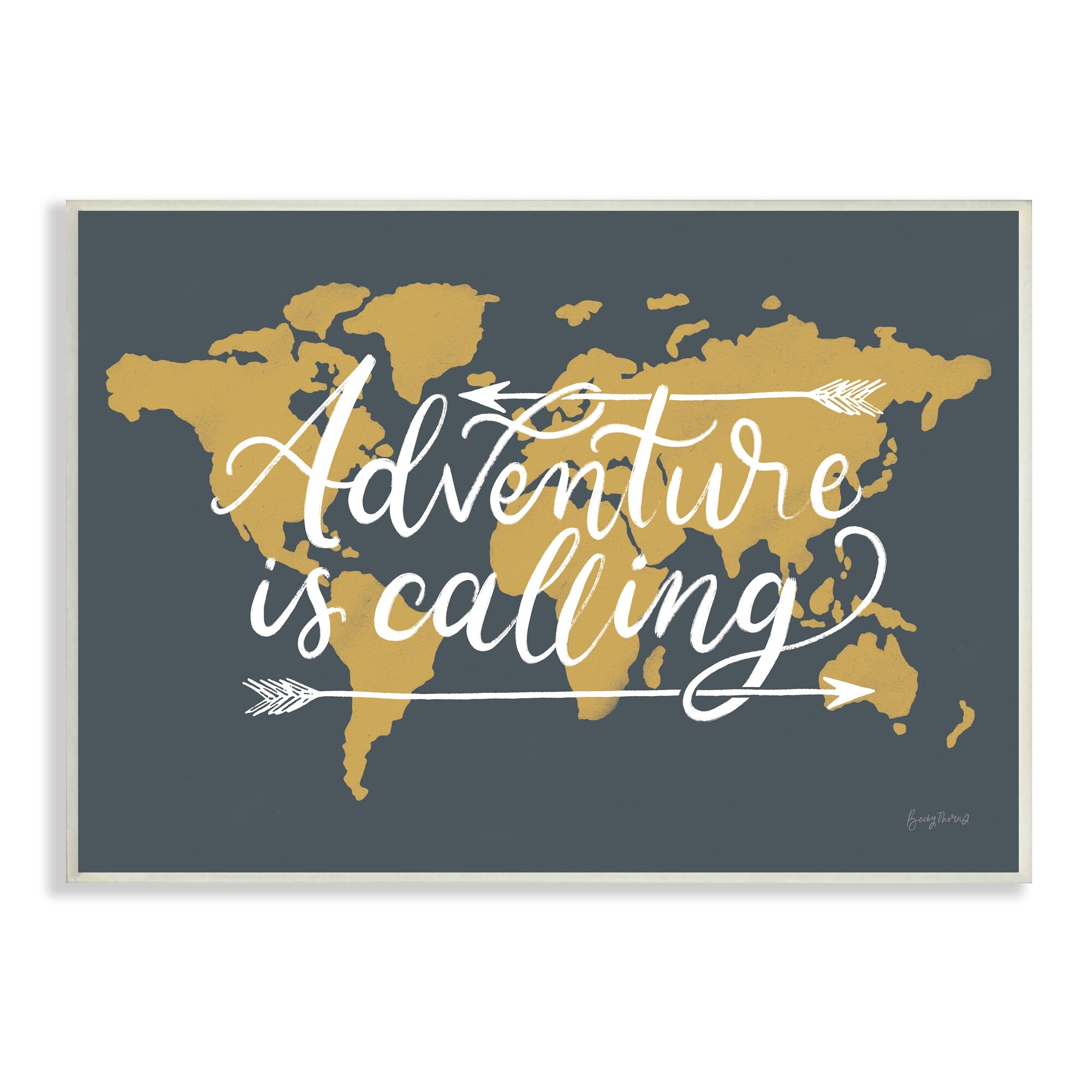 Stupell Industries Adventure is Calling Phrase Arrows over World Map Wood Wall Art
