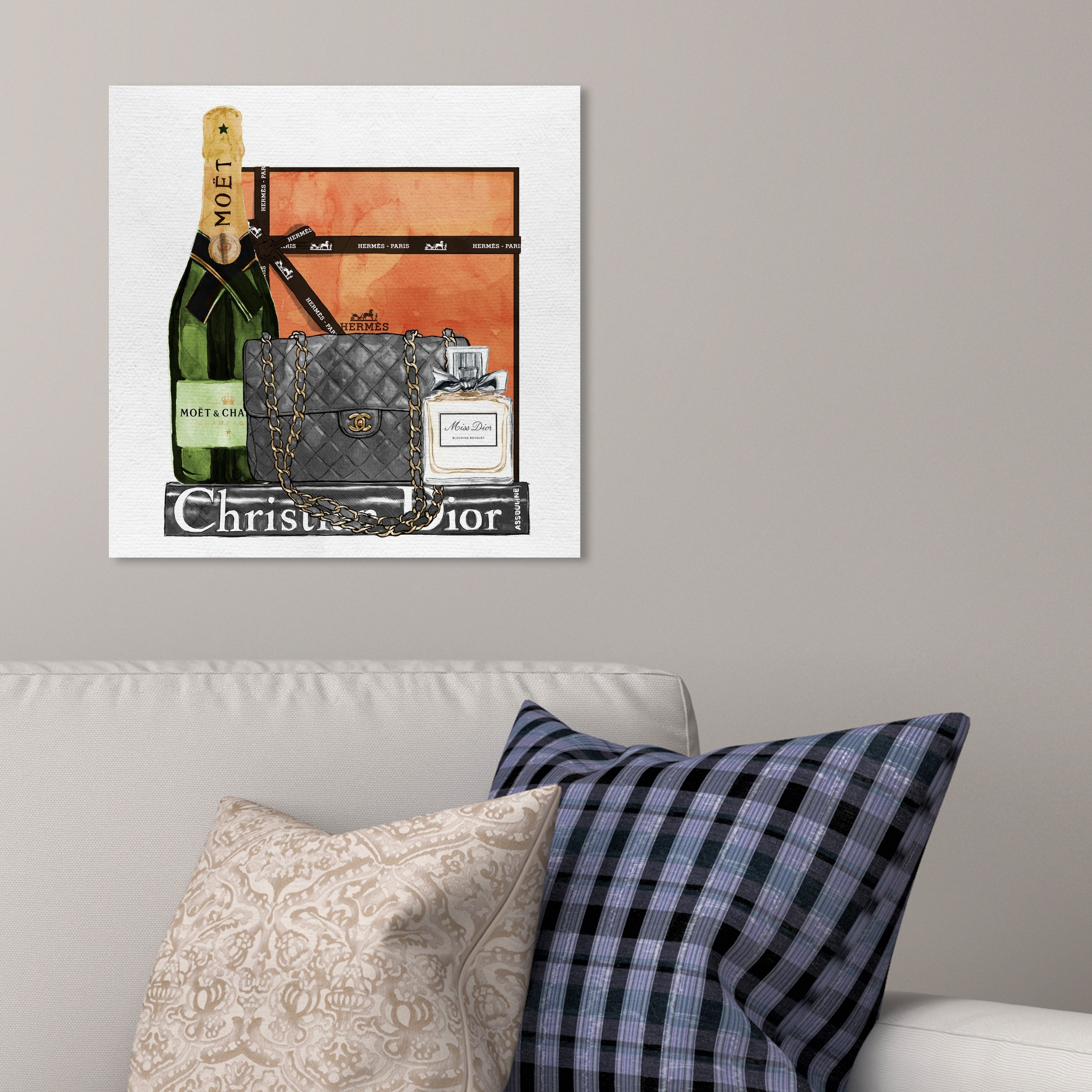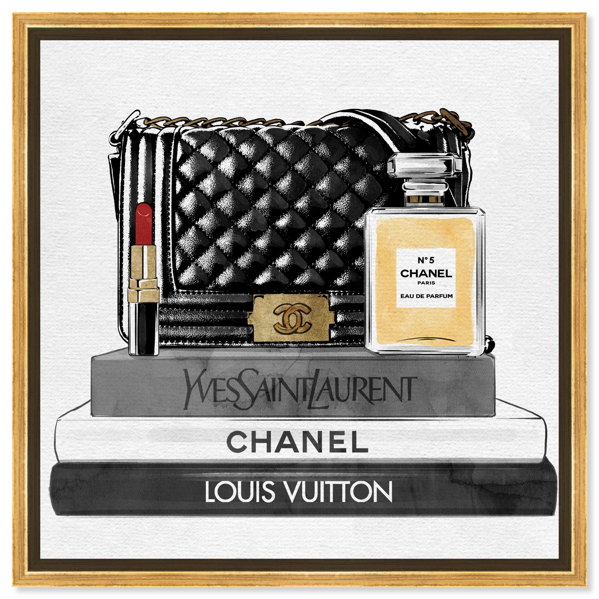 Black Paris Handbag and Books, Glam Beauty Essentials Modern Black Canvas Wall Art Print for Bedroom