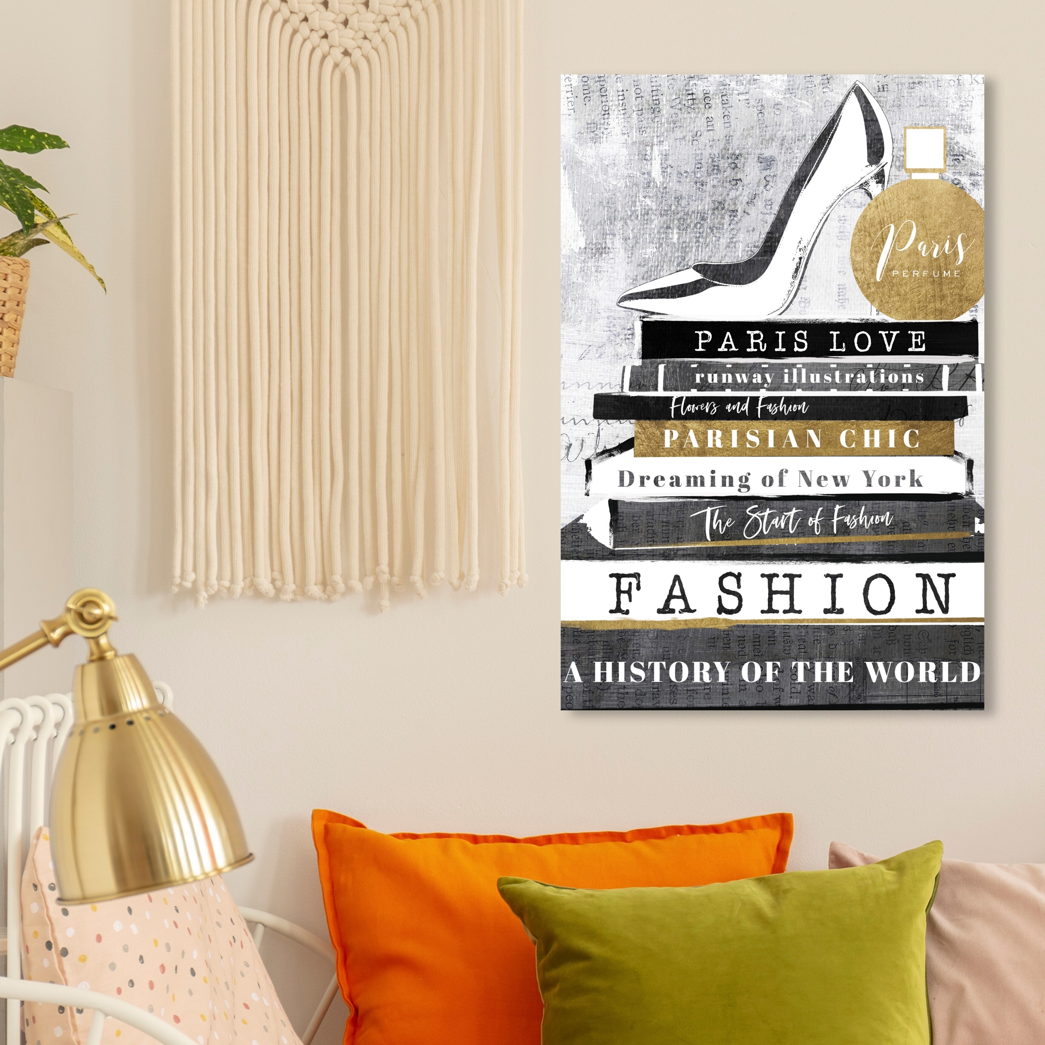 Wynwood Studio 'Runway Books and Perfume' Fashion and Glam Wall Art Canvas Print Books - Gold, Black