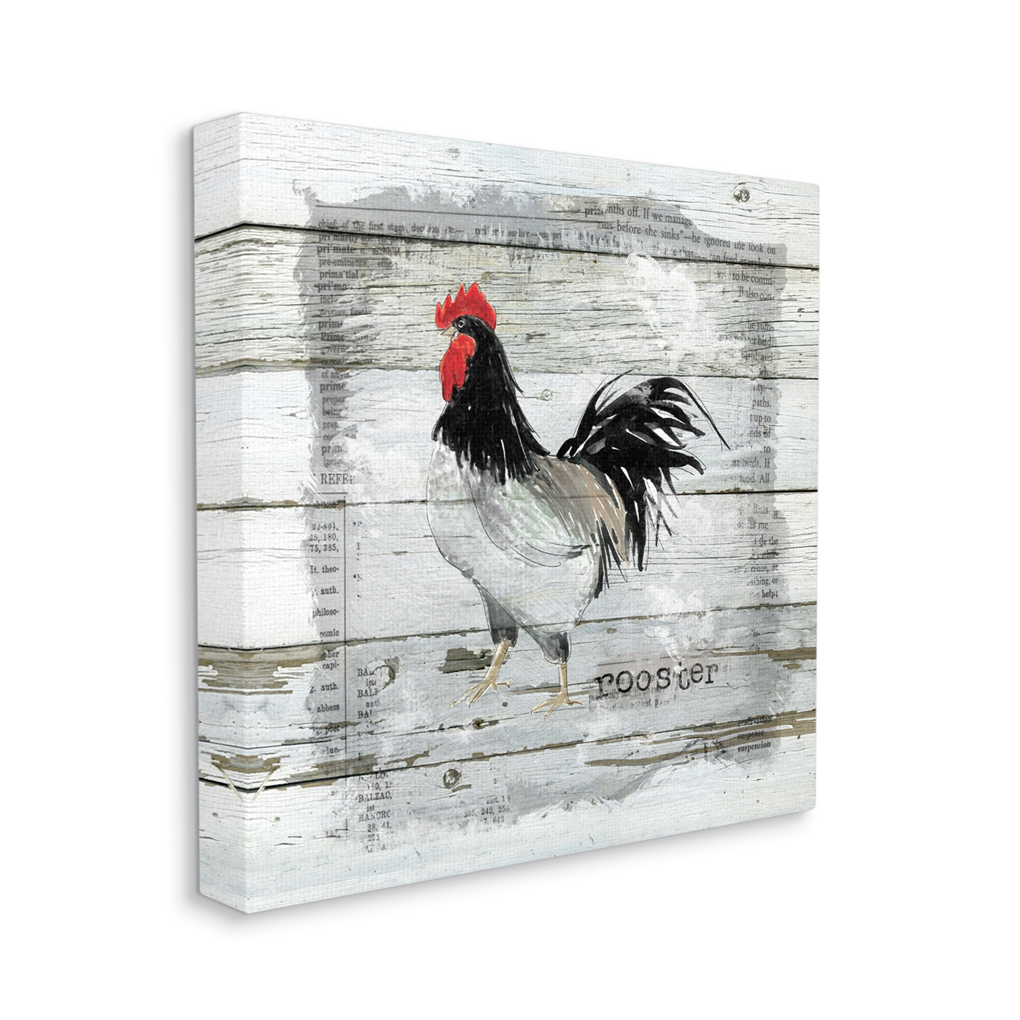 Stupell Industries Farm Country Rooster Rustic Pattern Book Collage Canvas Wall Art - Grey