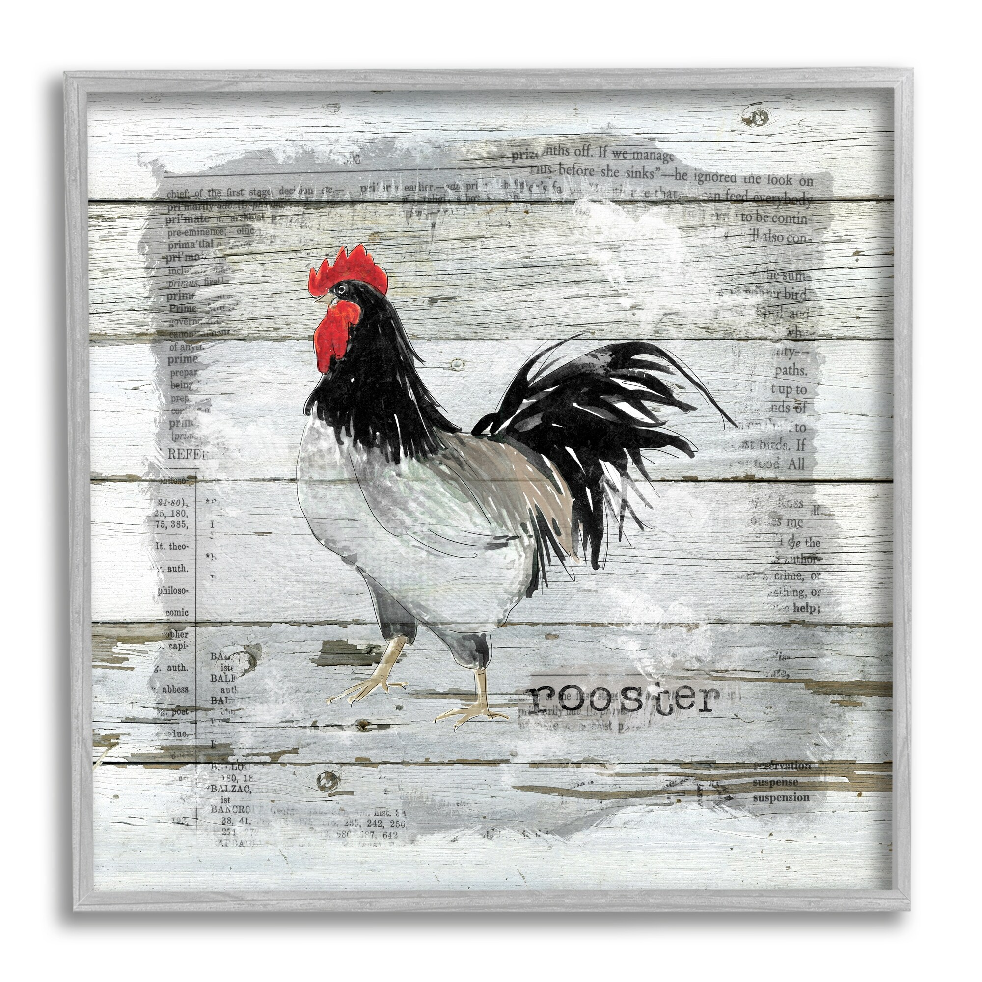 Stupell Farm Country Rooster Rustic Pattern Book Collage Framed Wall Art - Grey