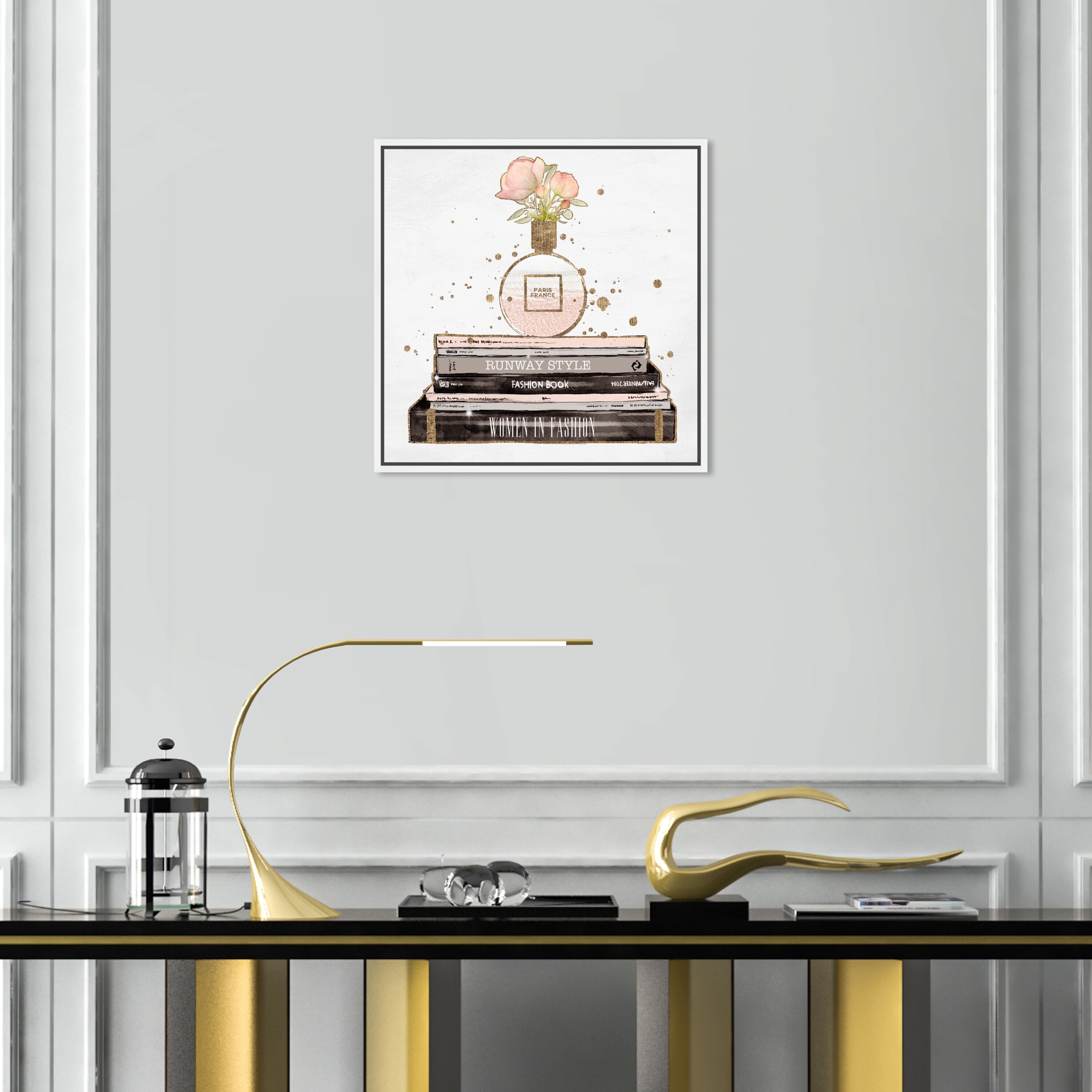 Oliver Gal 'Gold Florals on Books' Fashion and Glam Wall Art Framed Canvas Print Perfumes - Gold, Pink