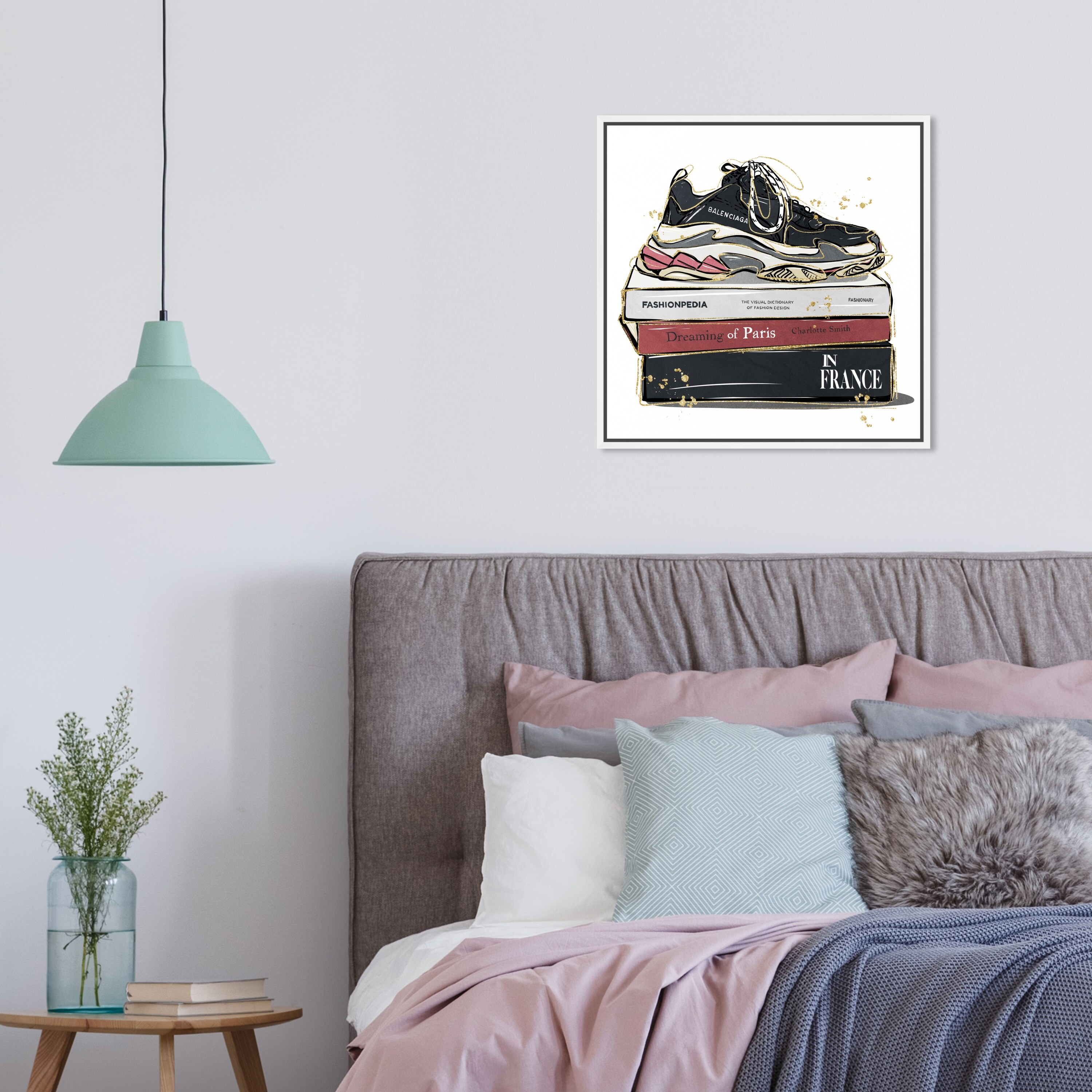 Oliver Gal 'Glam Book and Sneakers' Glam Black Wall Art Canvas Print