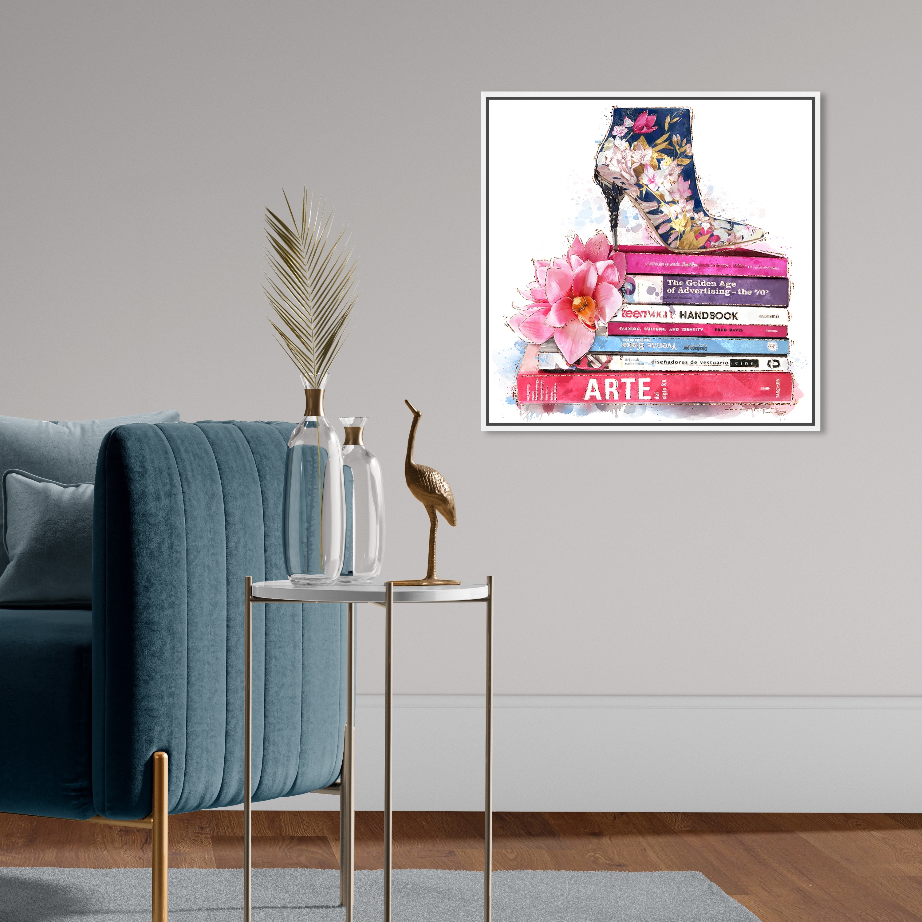 Oliver Gal 'The Ultimate Floral Boot' Fashion and Glam Wall Art Framed Canvas Print Books - Pink, Blue
