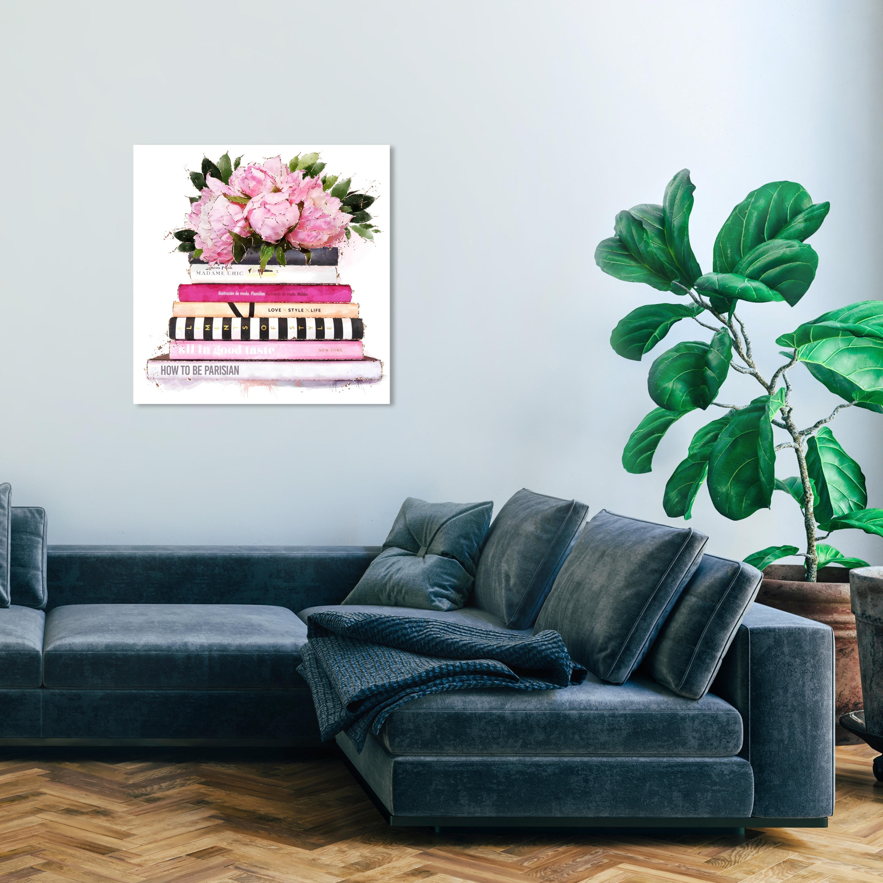Wynwood Studio Canvas Floral and Botanical Her Girl Boss Books Pink and Glam Wall Art Canvas Print