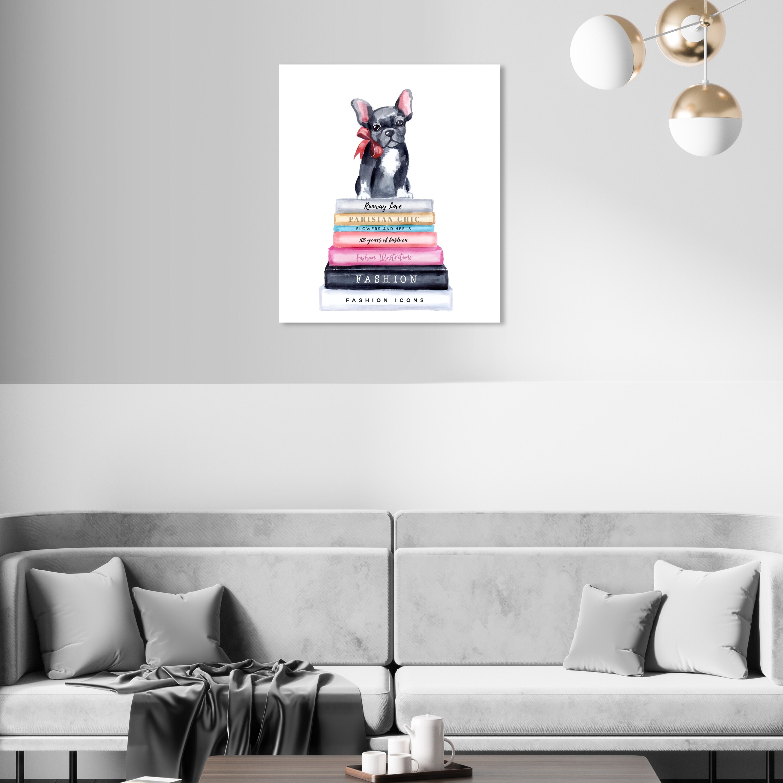 Oliver Gal 'Pup at the Top Book' Fashion and Glam Wall Art Canvas Print - Gray, White