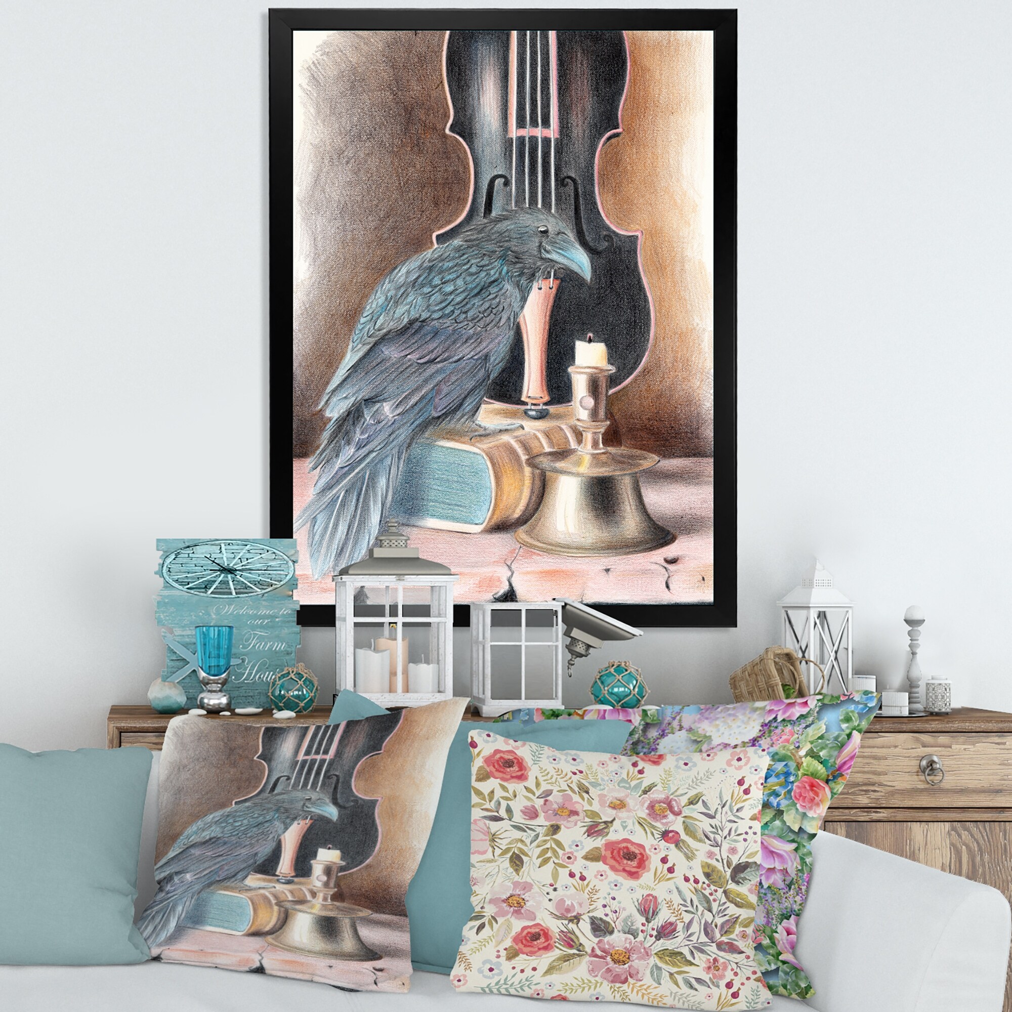 Designart "Raven On A Book With Violin I" Bohemian & Eclectic Framed Art Print