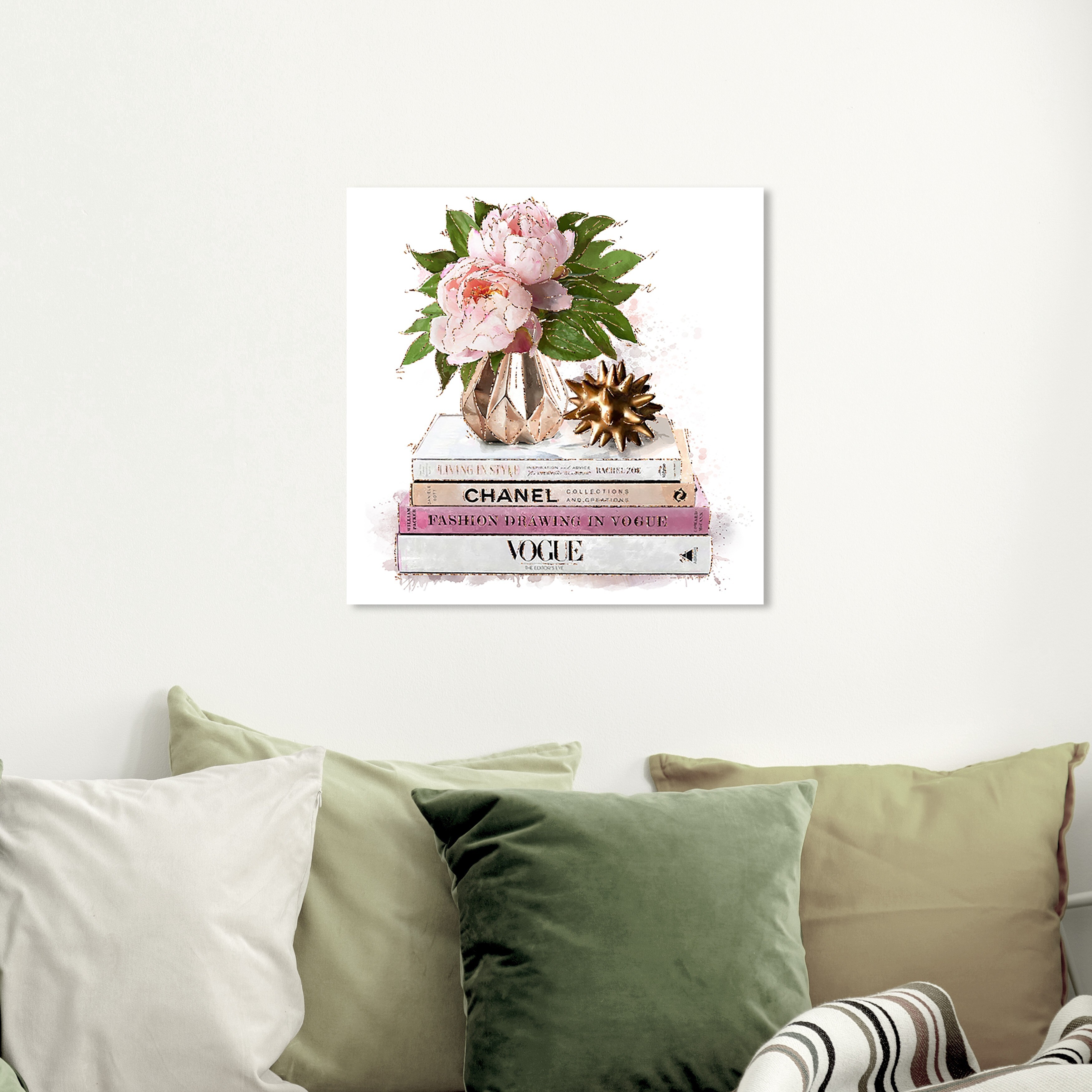 Oliver Gal 'Flowers in Fashion II' Fashion and Glam Wall Art Canvas Print Books - Pink, White