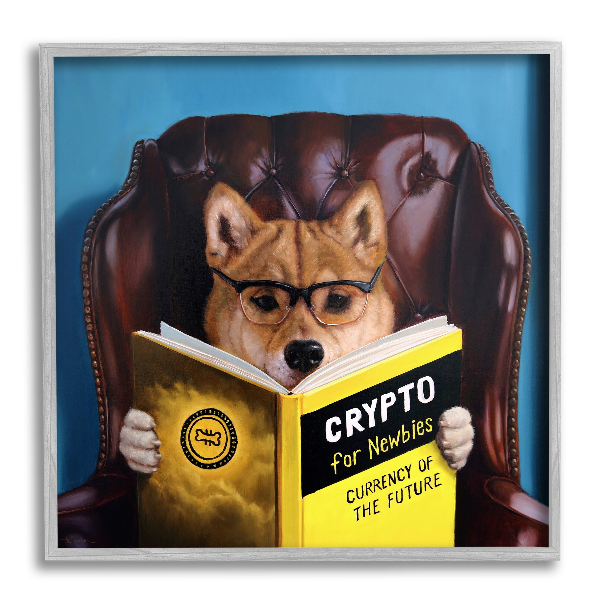 Stupell Industries Crypto for Newbies Funny Dog Reading Book Armchair Framed Wall Art, Design by Lucia Heffernan