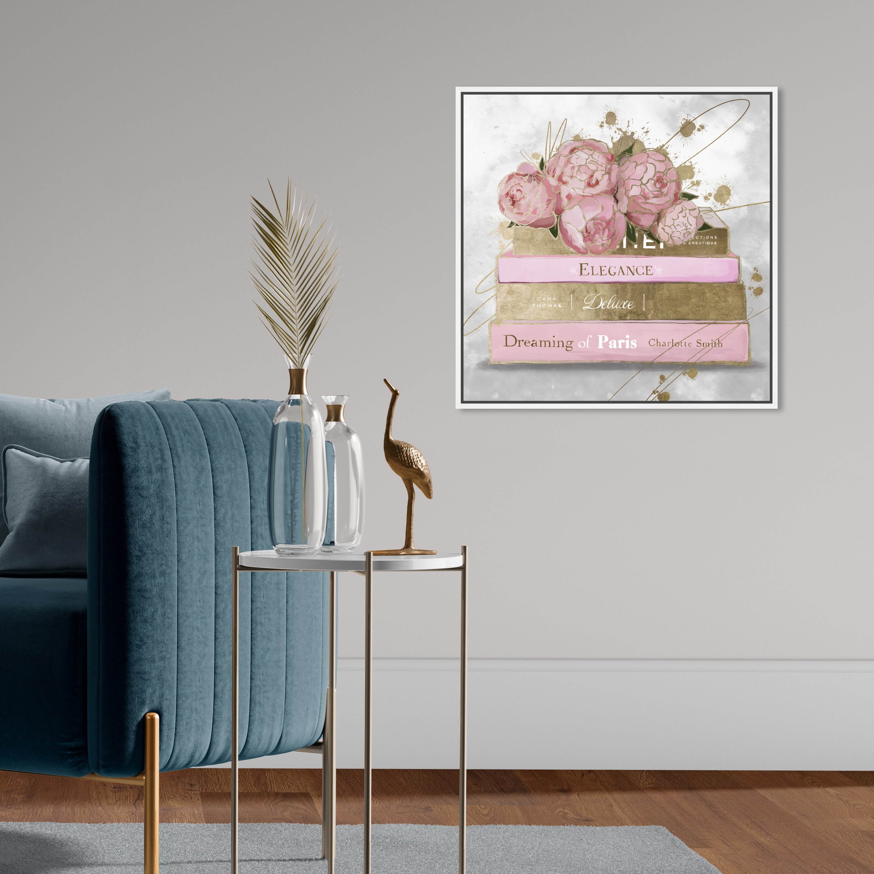 Oliver Gal 'Gorgeous Books and Flowers' Fashion Pink Contemporary Framed Wall Art Print
