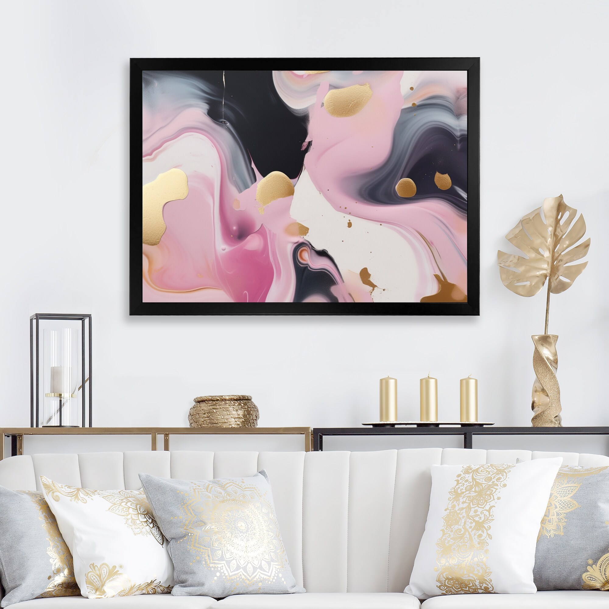 Designart "Gold And Pink Swirl Ink Ii" Abstract Marble Framed Wall Art Prints