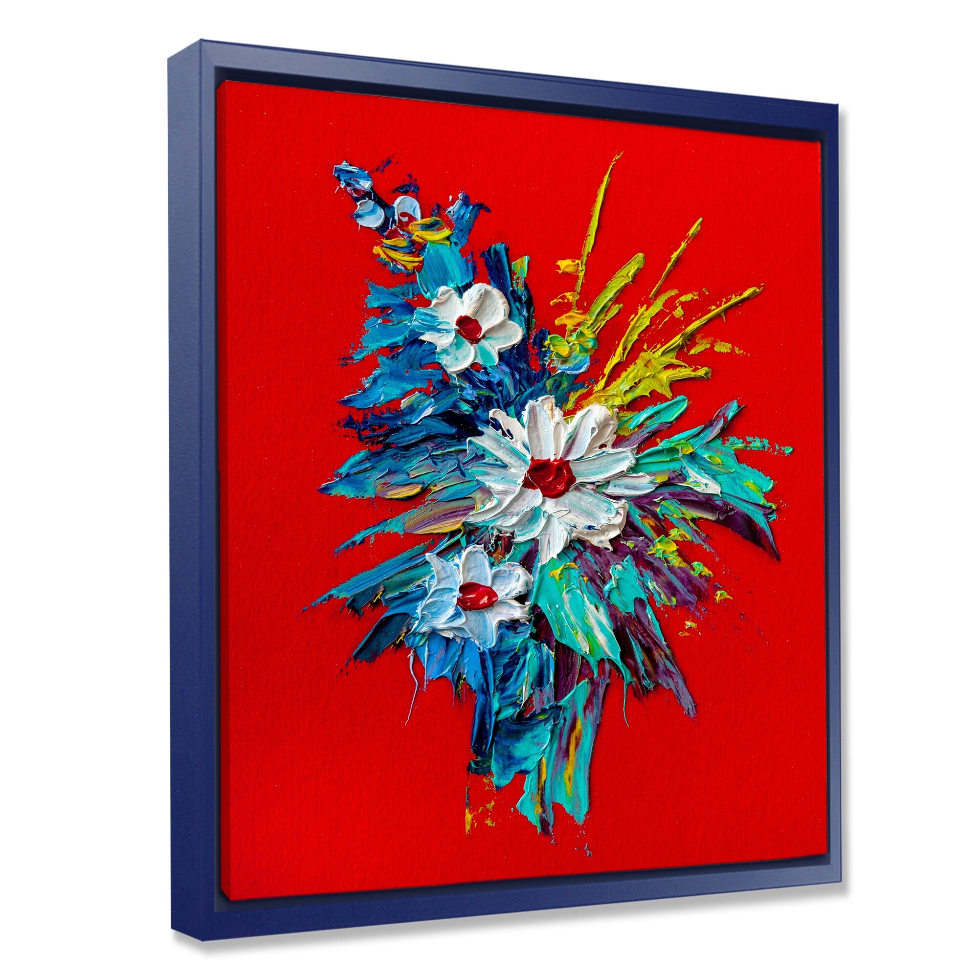 Designart "Daisies In the Garden on Red Background" Farmhouse Framed Canvas Wall Art Print