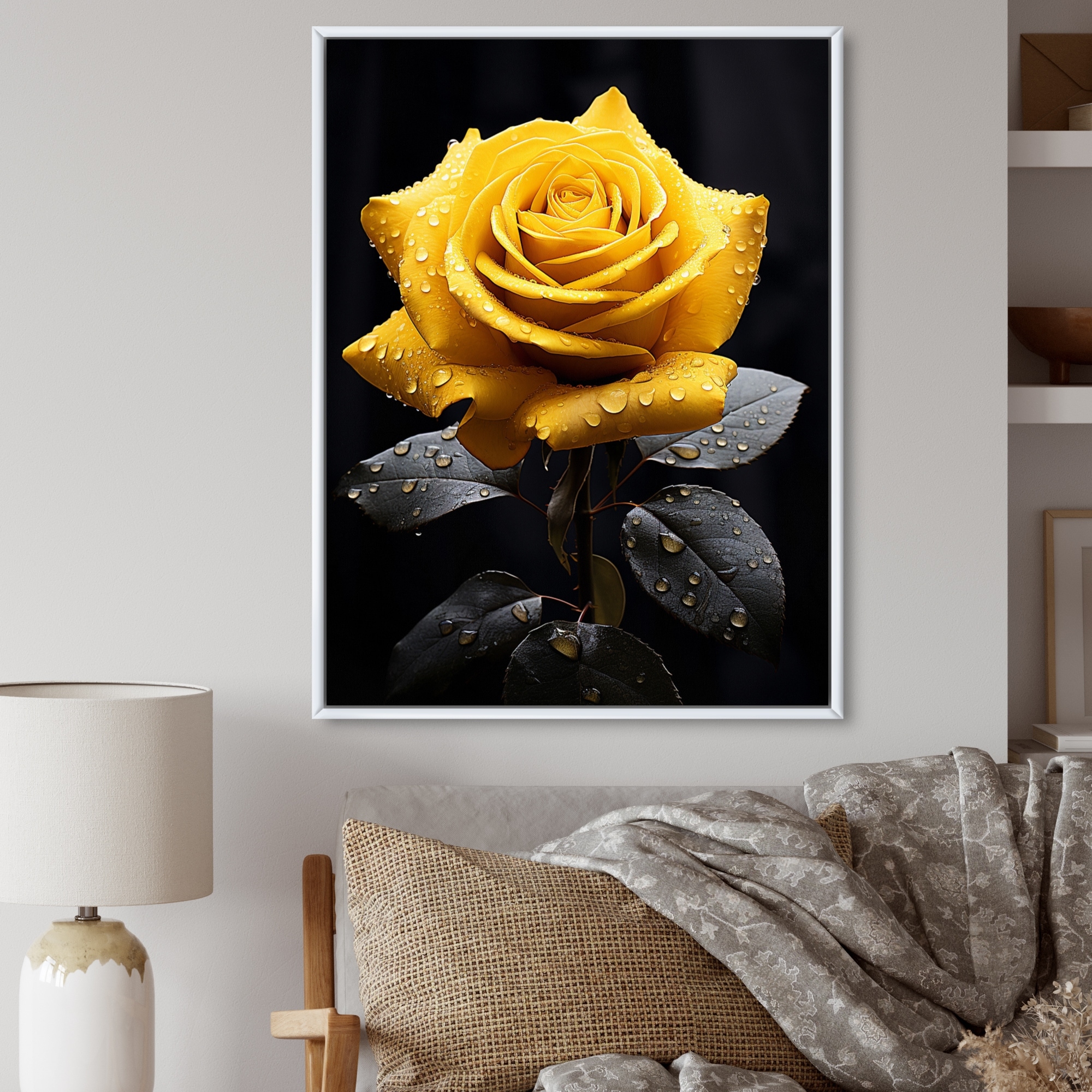 Designart "Yellow Black Rose Elegance III" Roses Framed Wall Art Living Room