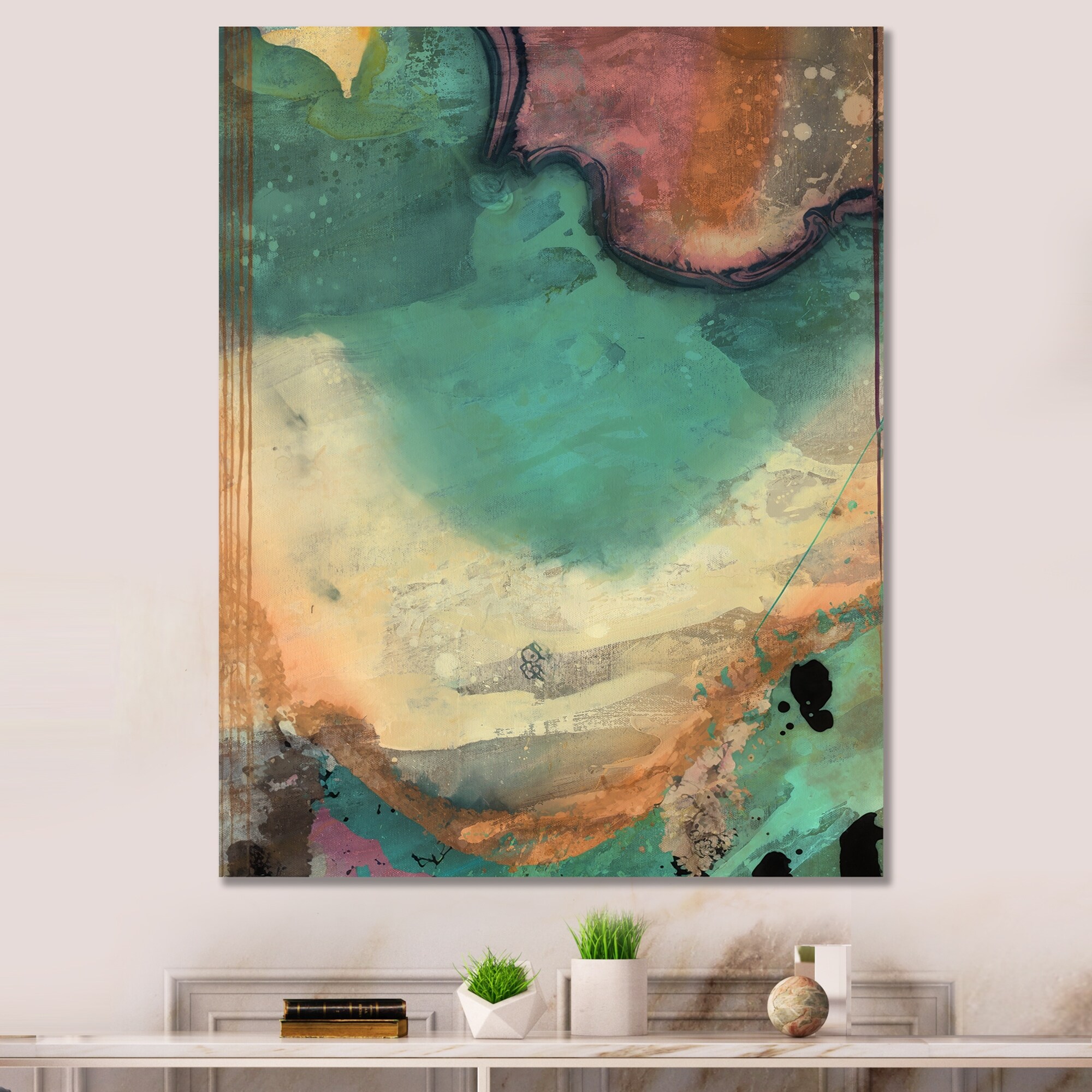 Designart 'Turquoise Waves in Paradise VI' Abstract Liquid Ink Metal Wall Art