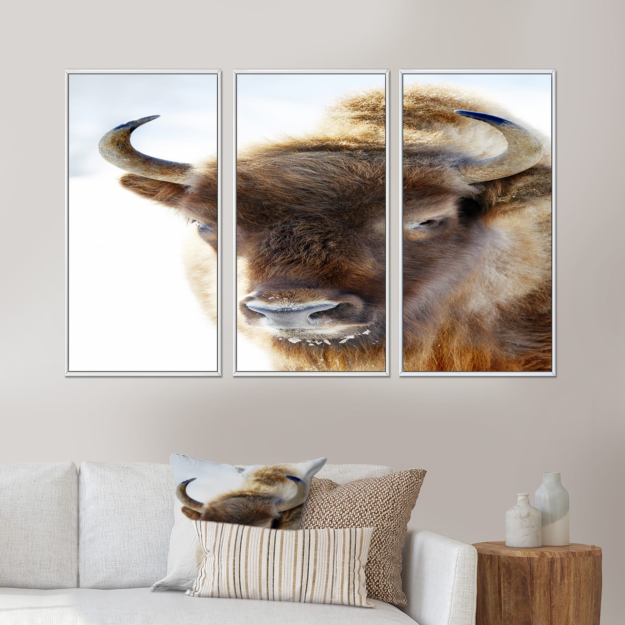 Designart "Portrait Of Wild Bison" Farmhouse Framed Art Set of 3 - 4 Colors of Frames