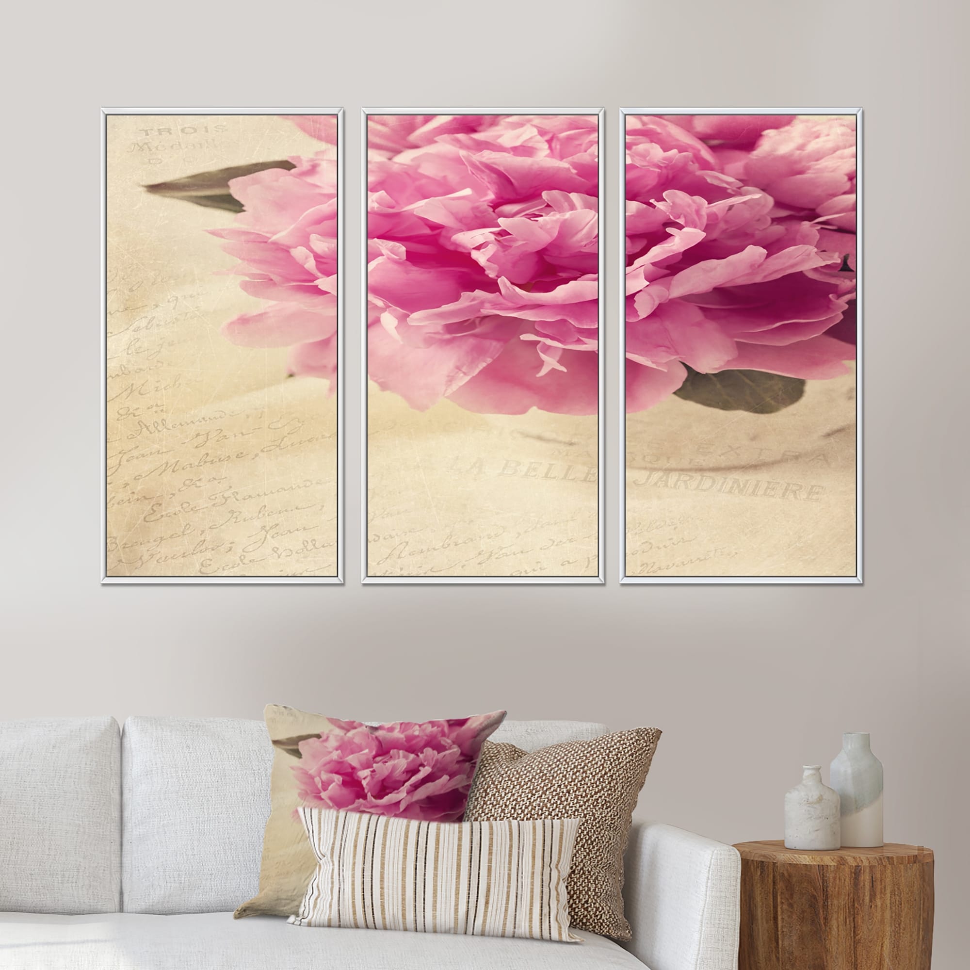 Designart "Peony Flowers in Vase on Table" Floral Framed Canvas Wall Art Print Set of 3 - 4 Colors of Frames