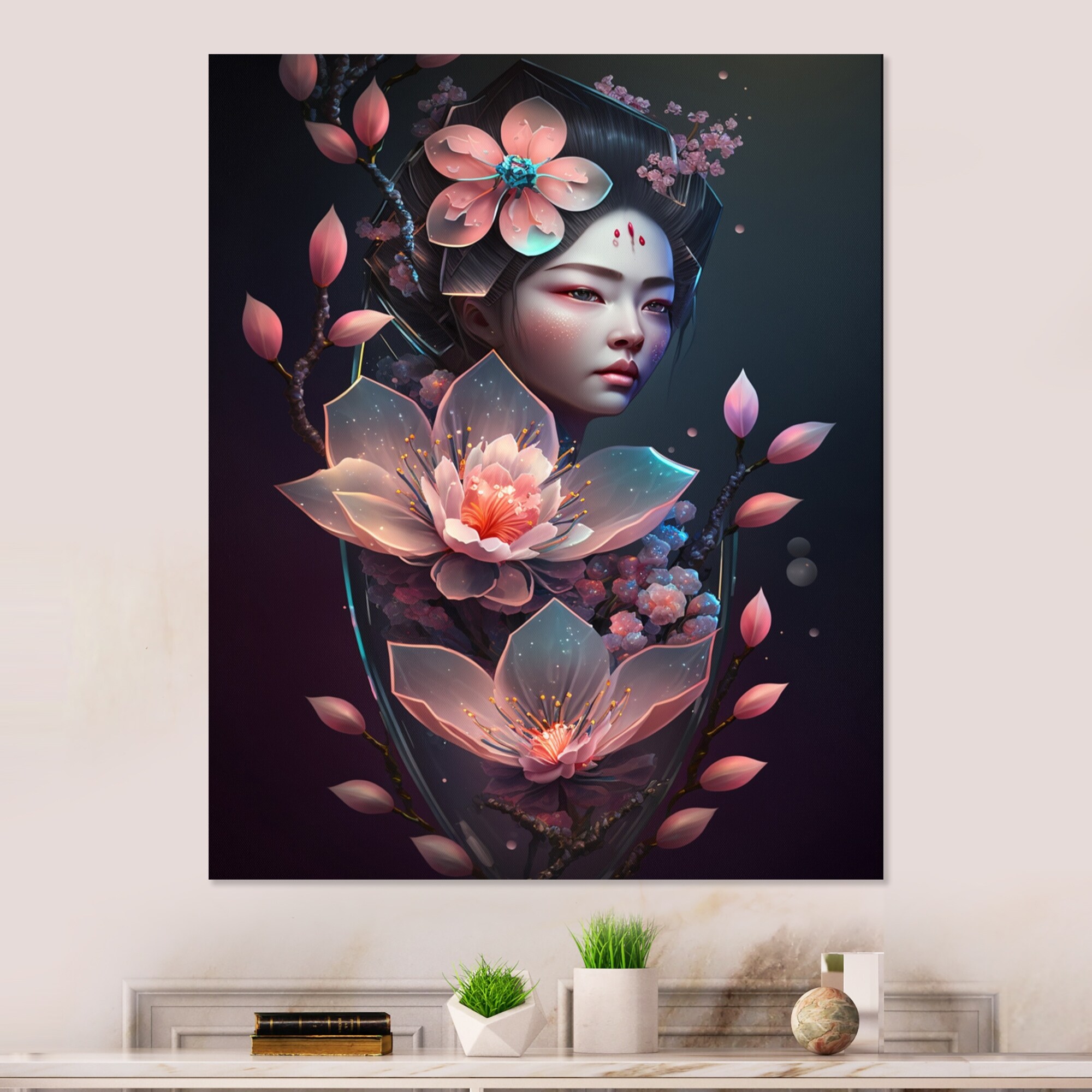 Designart 'Woman With Cherry Blossums' Woman Floral Metal Wall Art