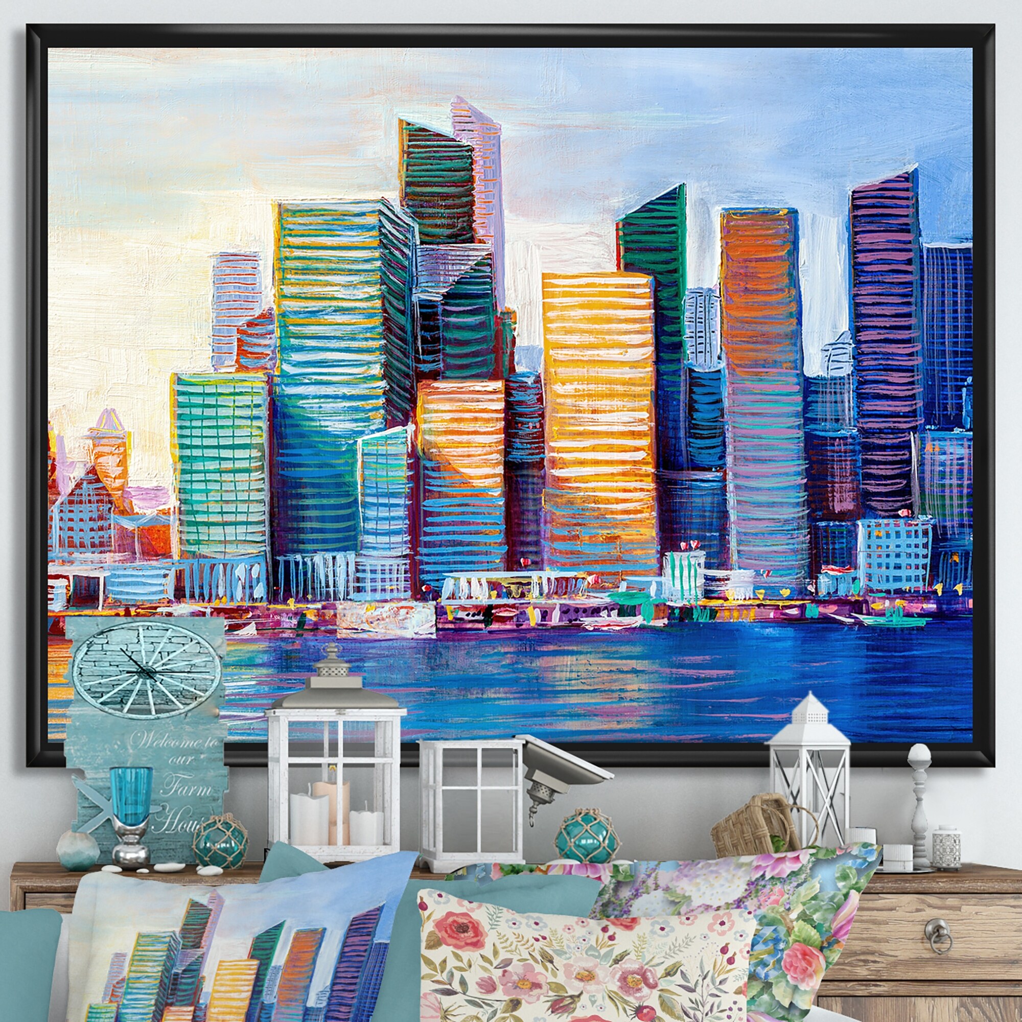 Designart "Cityscape Of Skyscrapers in Modern City I" Modern Framed Canvas Wall Art Print
