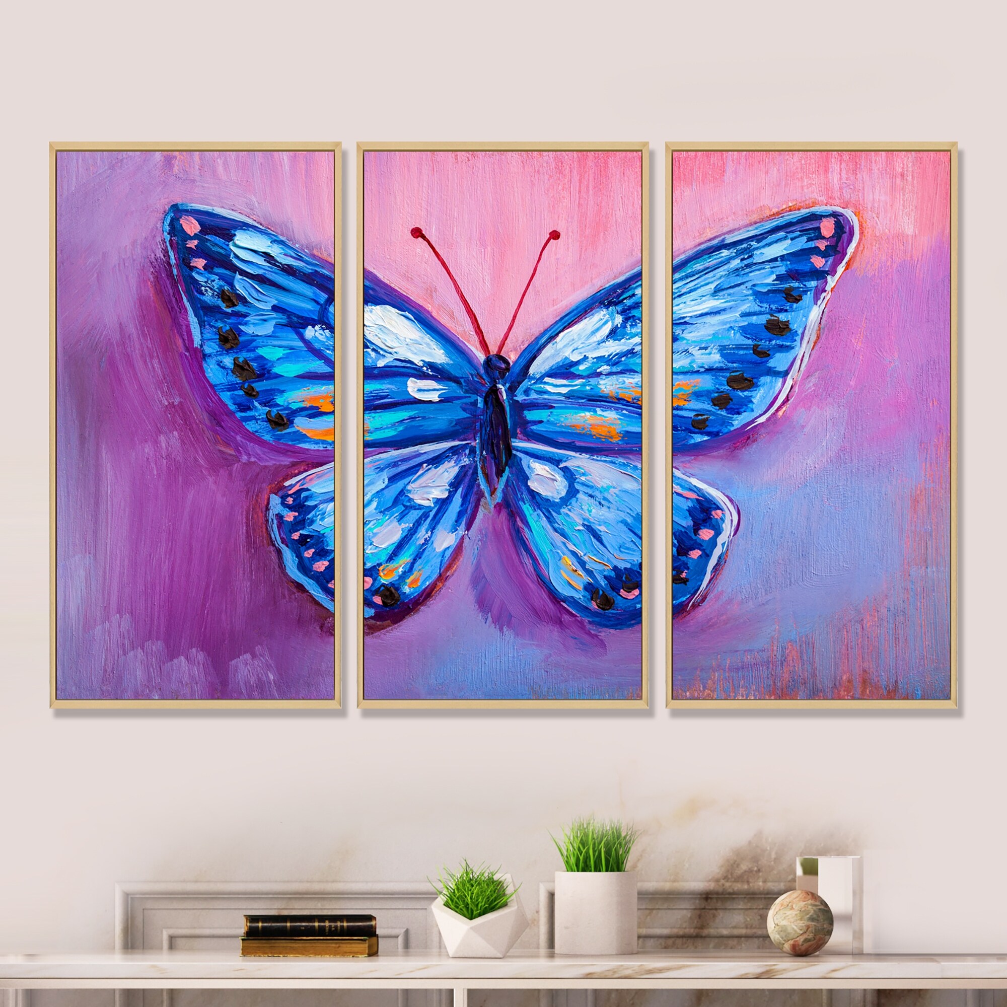 Designart "Vintage Blue Butterfly I" Modern Framed Art Set of 3 - 4 Colors of Frames