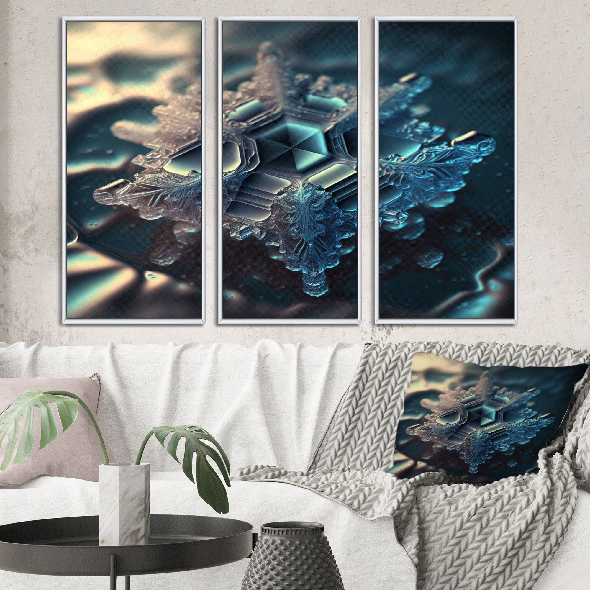 Designart "Harmony Water Crystal VI" Modern Geometric Framed Canvas Wall Art Print - 3 Panels