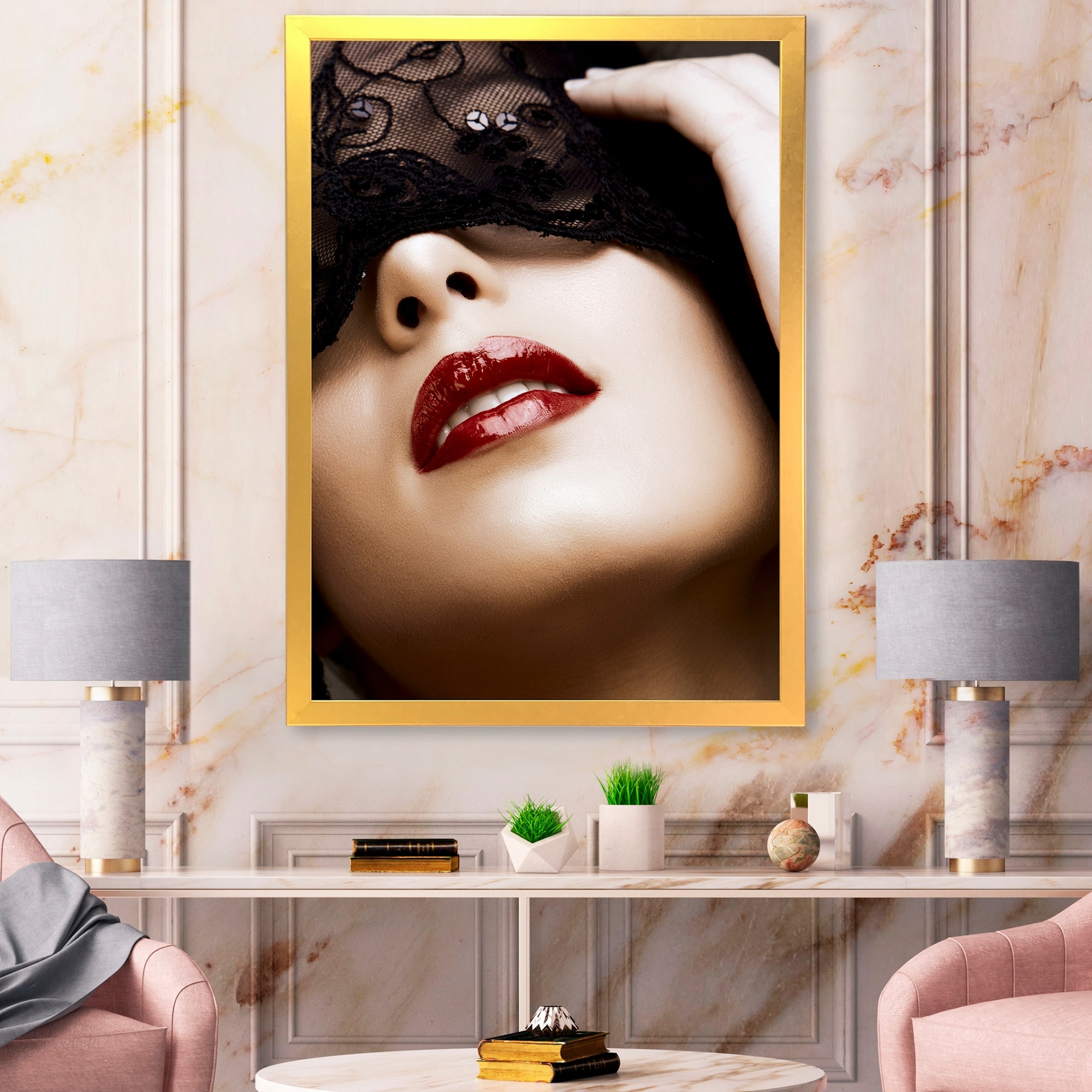 Designart "Portrait of Modern Woman With Mask" Modern Framed Art Print