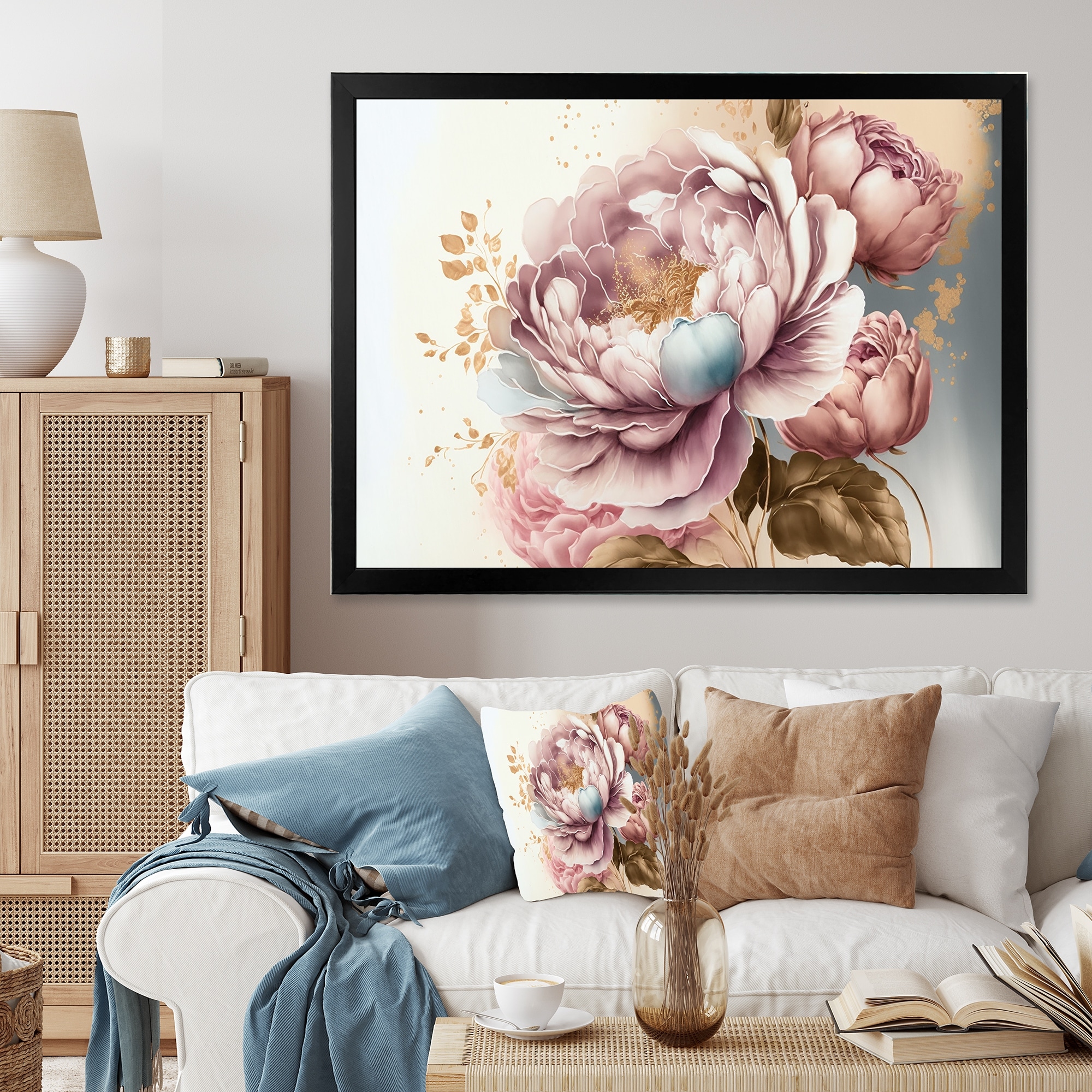 Designart "Pink And Gold Rose II" Floral & Botanical Framed Art Print