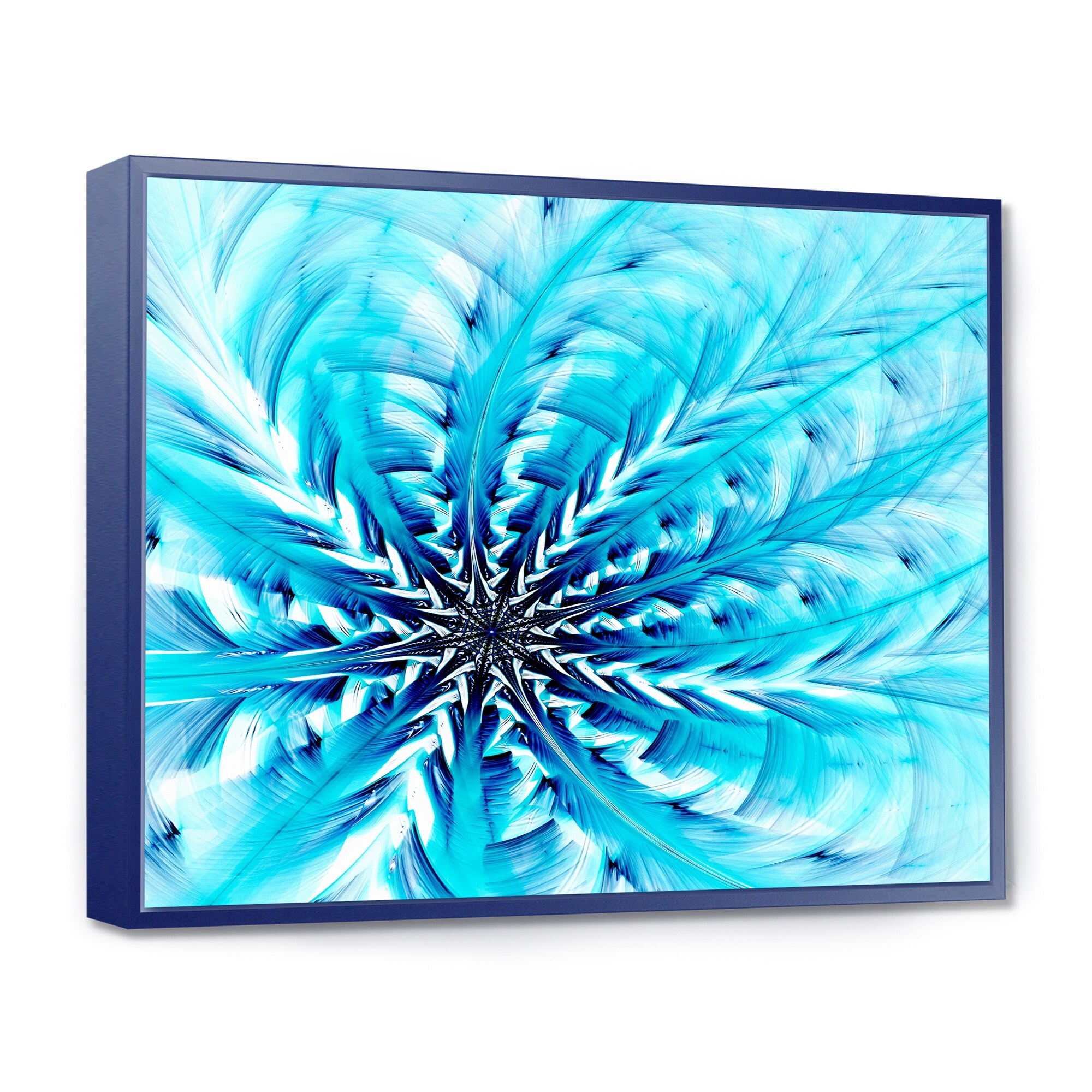 Designart "Light Blue Fractal Flower Pattern" Abstract Wall Art Framed Canvas