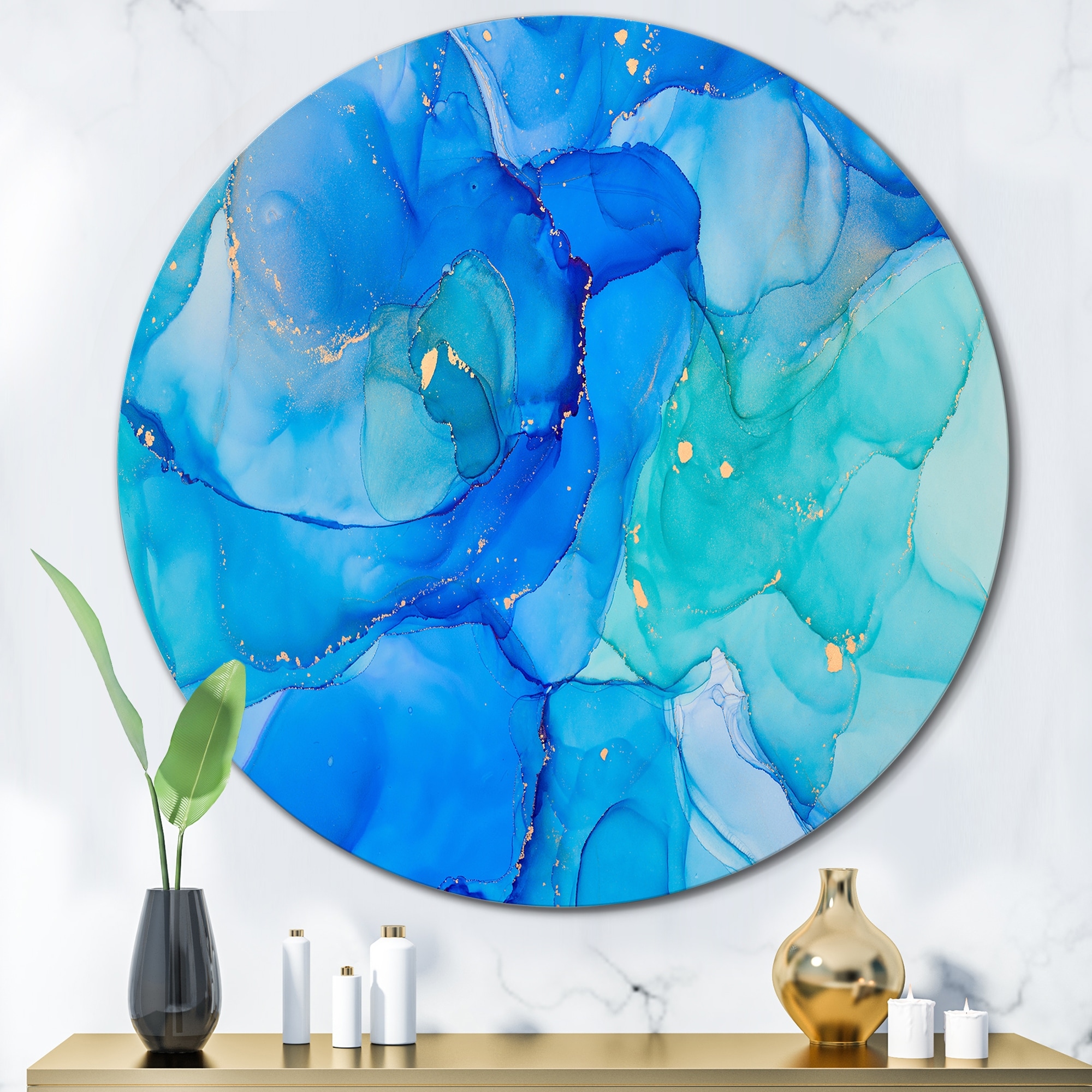 Designart 'Blue Luxury Abstract Fluid Art XXIV' Modern Metal Circle Wall Art
