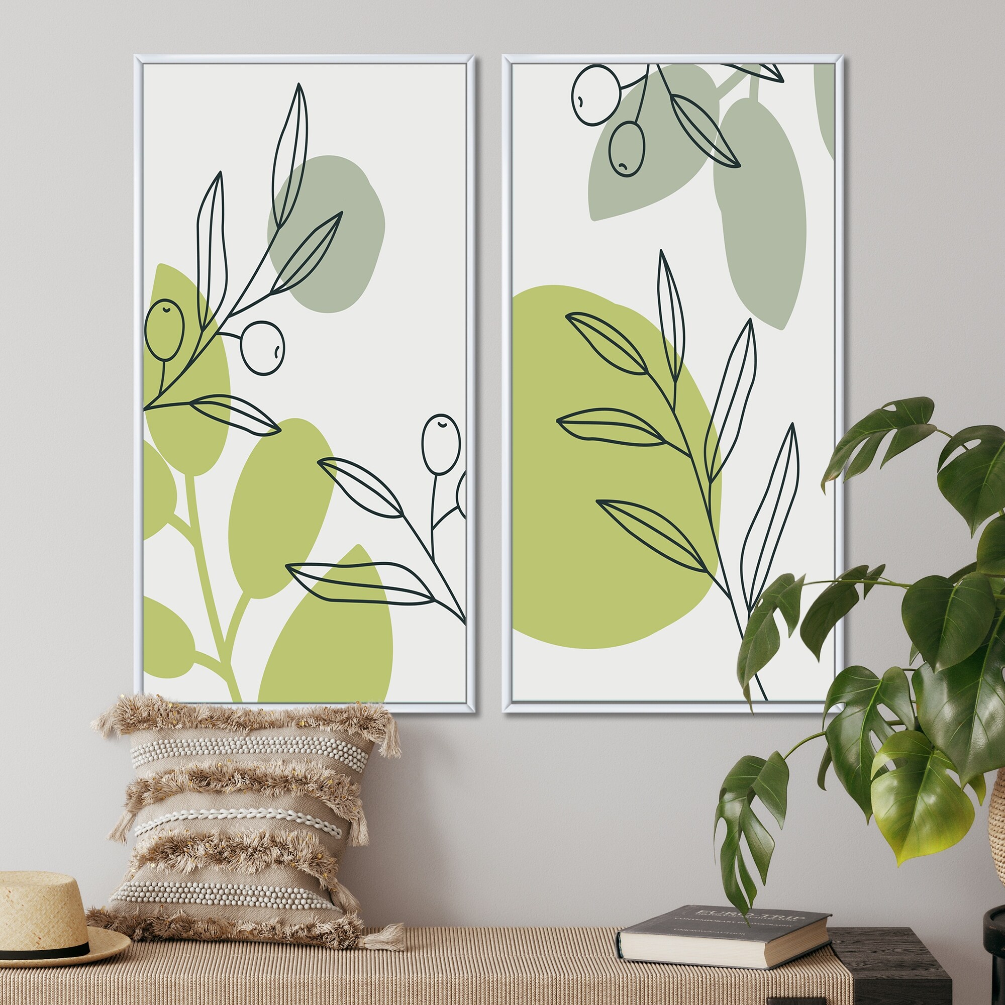 Designart "Foliage With Vibrant Organic Shapes II" Geometric Framed Art Set of 2 Pieces