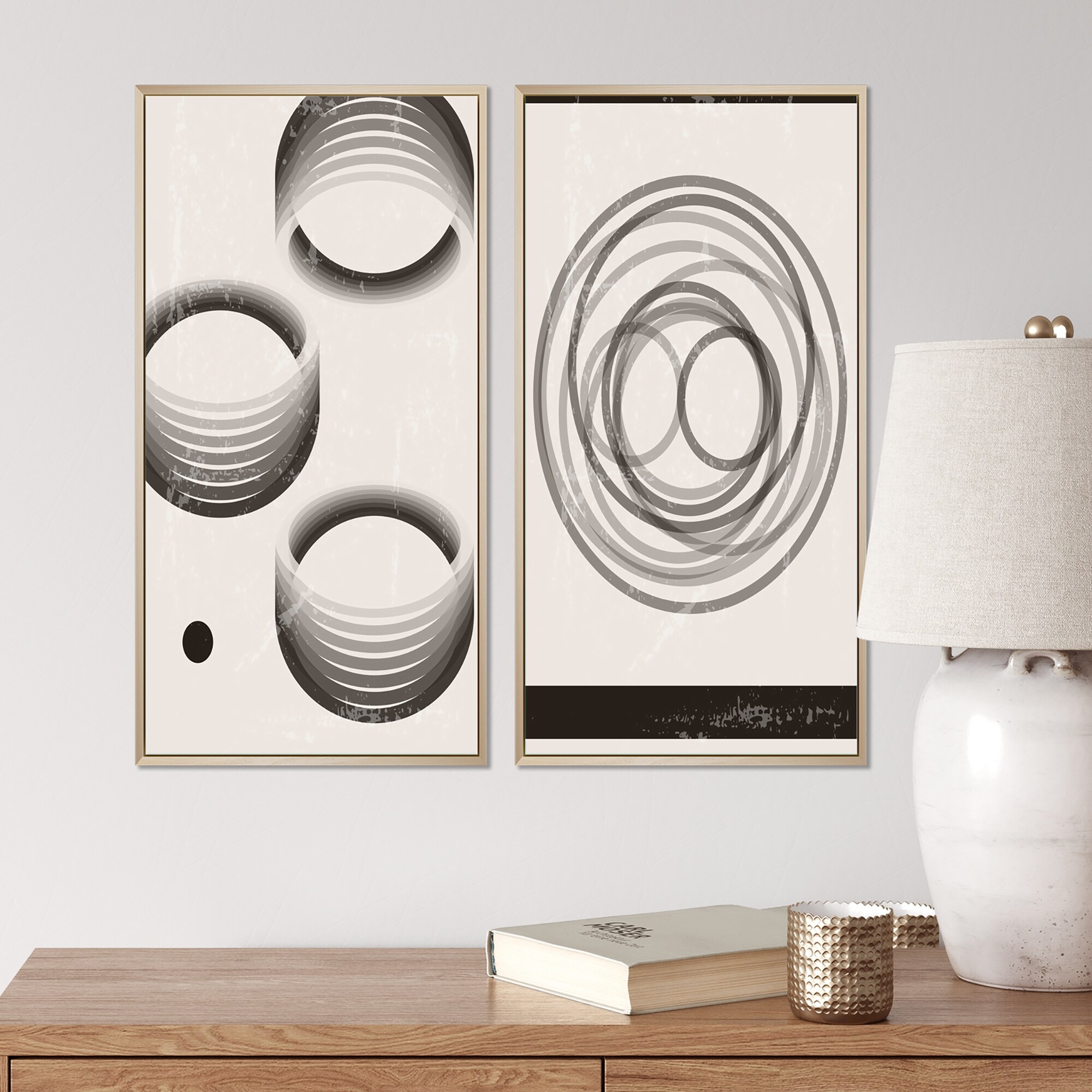 Designart "Monochrome Vintage Minimalistic Geometrics VII" Geometric Framed Art Set of 2 Pieces
