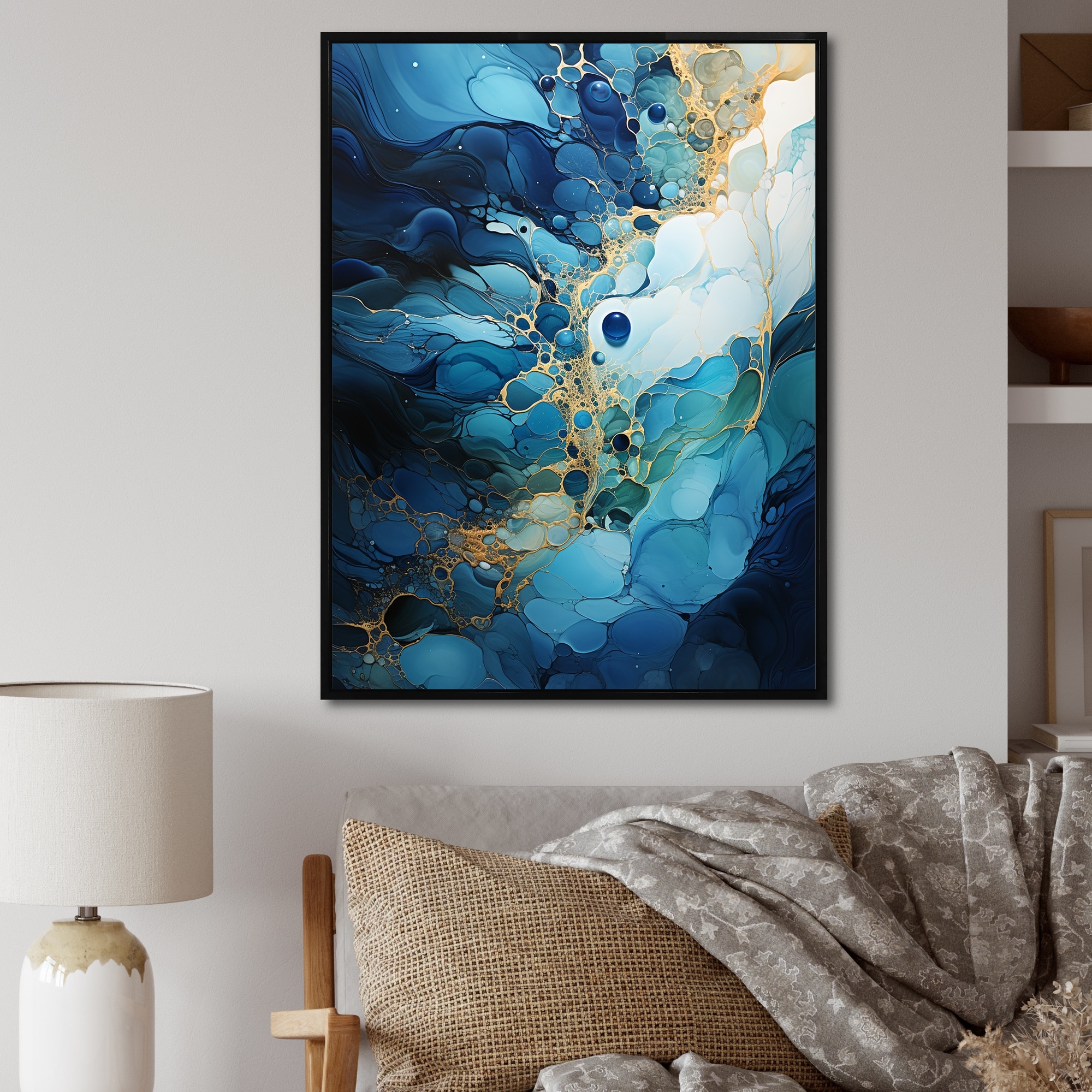 Designart "Blue Creative Liquid Ink Art" Modern Framed Canvas Wall Art