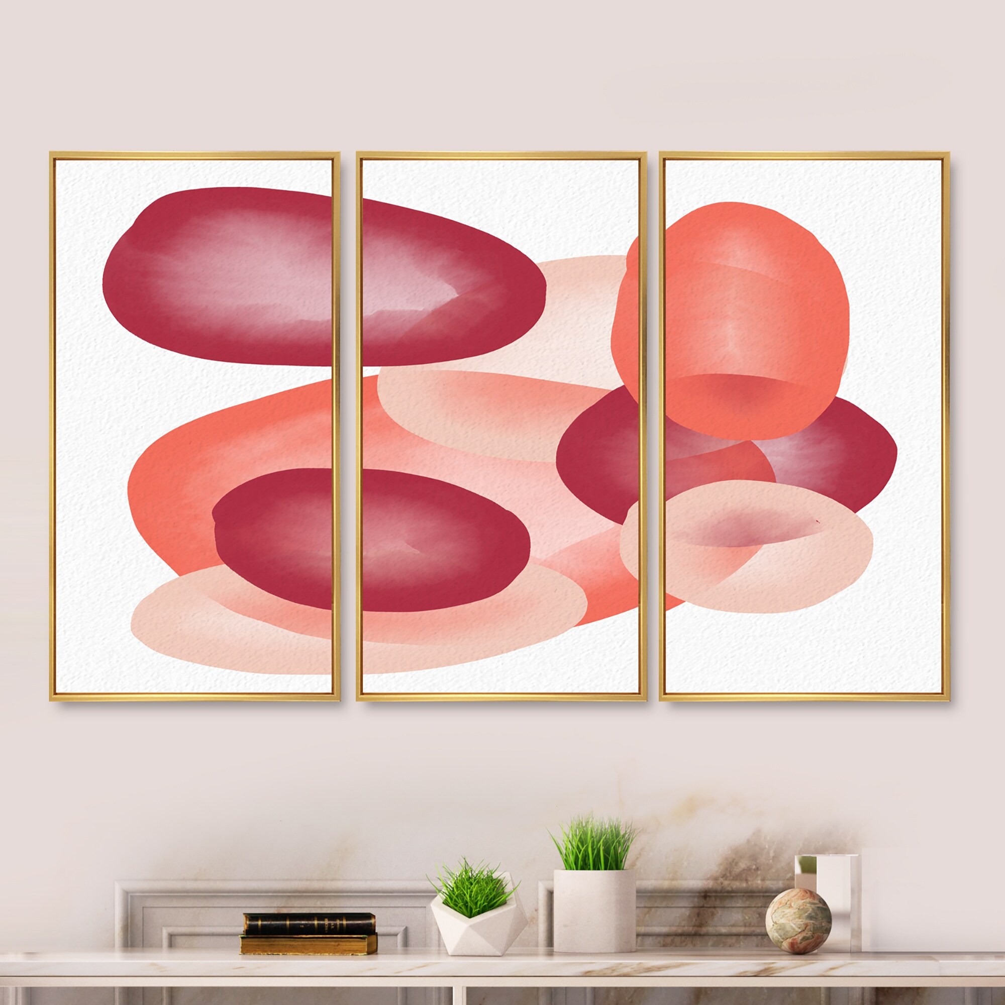 Designart "Organic Minimalistic Red And Pink Shapes I" Modern Framed Canvas Wall Art Print Set of 3 - 4 Colors of Frames