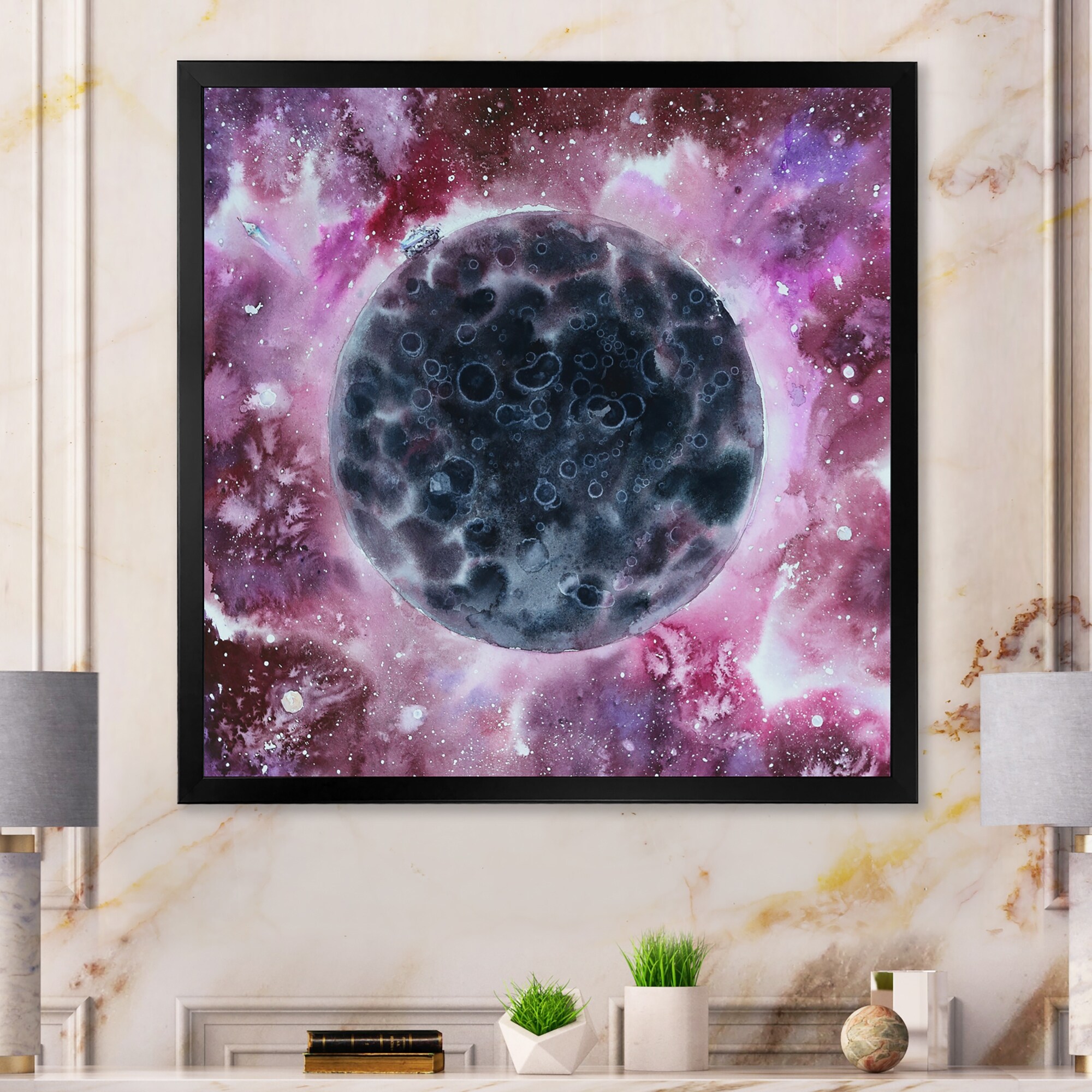 Designart "Black And Purple Moon" Modern Framed Art Print
